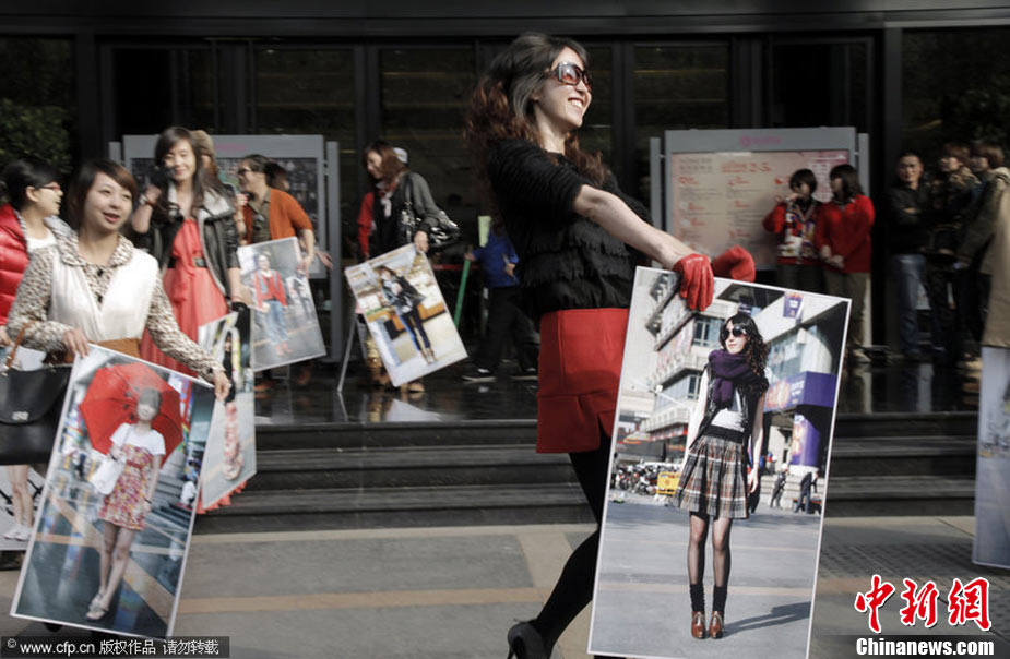 11月23日,在杭州廣場上,百余名身穿時尚服飾,化著個性妝扮的年輕人,手拿自己的靚照,走上街頭,向人們大膽展示自己的風(fēng)采。右娃 攝 圖片來源:CFP視覺中國