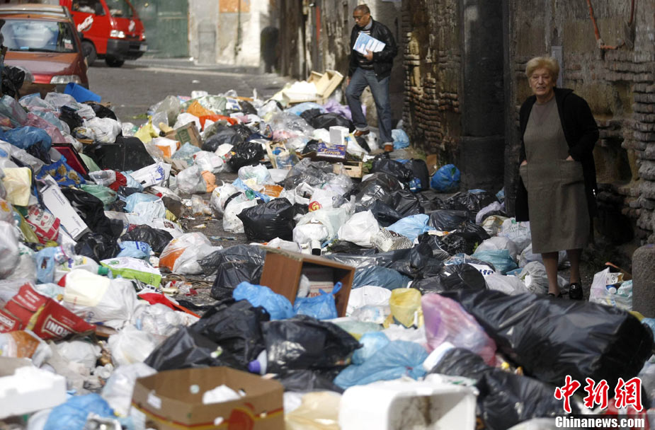 11月22日,意大利“垃圾危機”扔在持續(xù),那不勒斯街道垃圾成患。意大利政府打算在位于那不勒斯東南大約20公里的泰爾齊尼奧鎮(zhèn)新建一座垃圾處理場,以解決那里的垃圾問題。