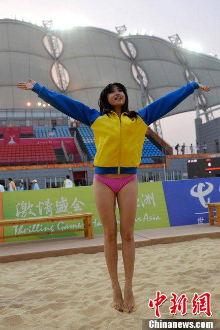 11月24日晚,廣州亞運會沙排比賽完美落幕。青春時尚的沙排寶貝給人留下深刻印象,她們用熱情點燃現(xiàn)場觀眾的激情,水手裝、海軍帽、藍色海洋比基尼加上性感熱舞謀殺菲林無數(shù),令人血脈噴張!讓我們再一次重溫“沙排寶貝”的各種性感造型。中新網(wǎng)記者 金碩 攝