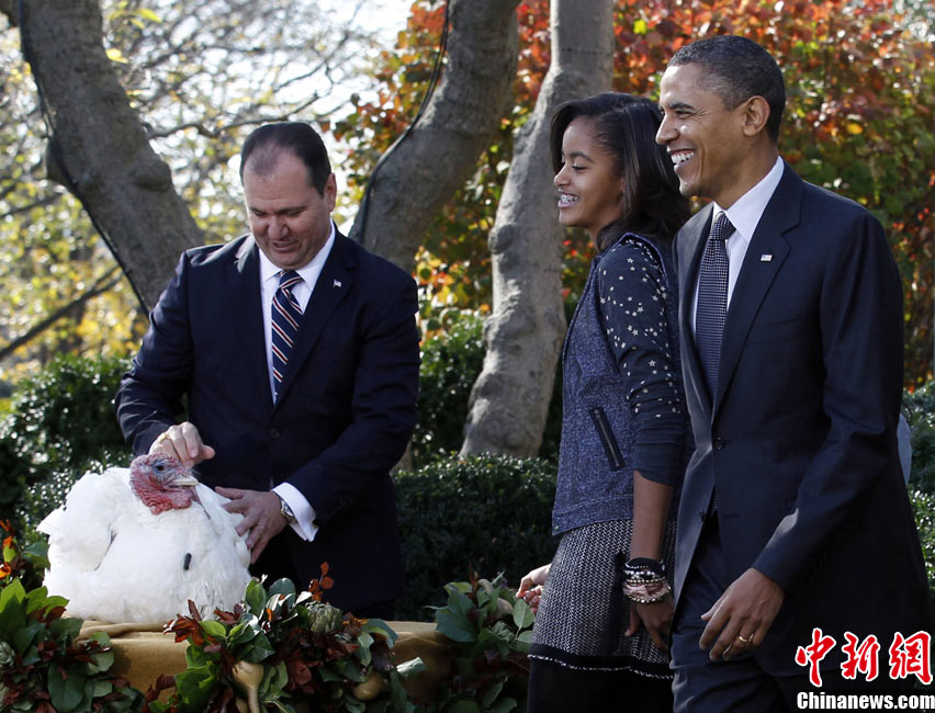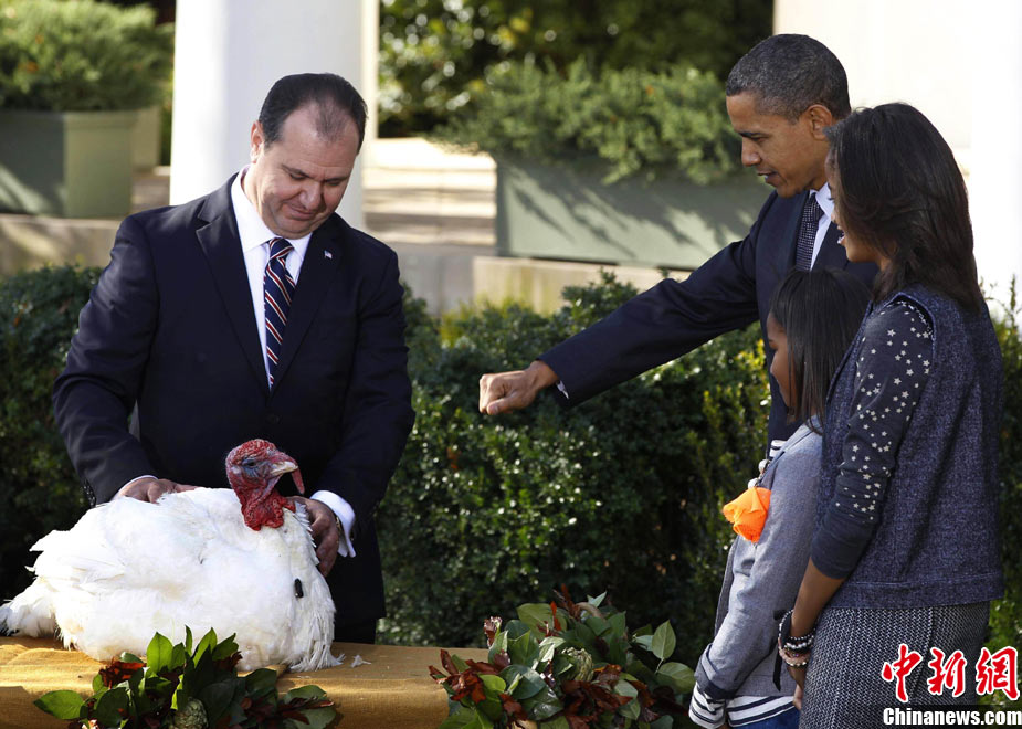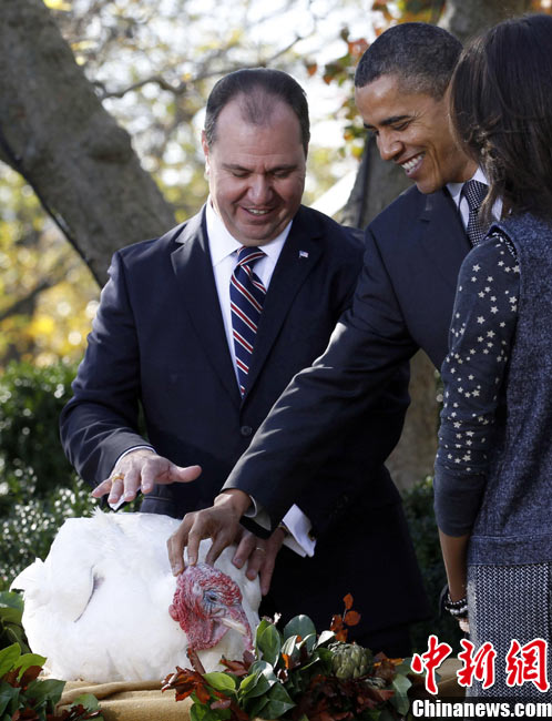 11月24日,兩只分別名叫“蘋(píng)果”和“蘋(píng)果汁”的加州火雞今天成了全美數(shù)億同類中的幸運(yùn)兒,在感恩節(jié)前一天,它們得到了“免死金牌”——美國(guó)總統(tǒng)奧巴馬依照傳統(tǒng)當(dāng)天親自赦免了它們。