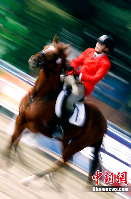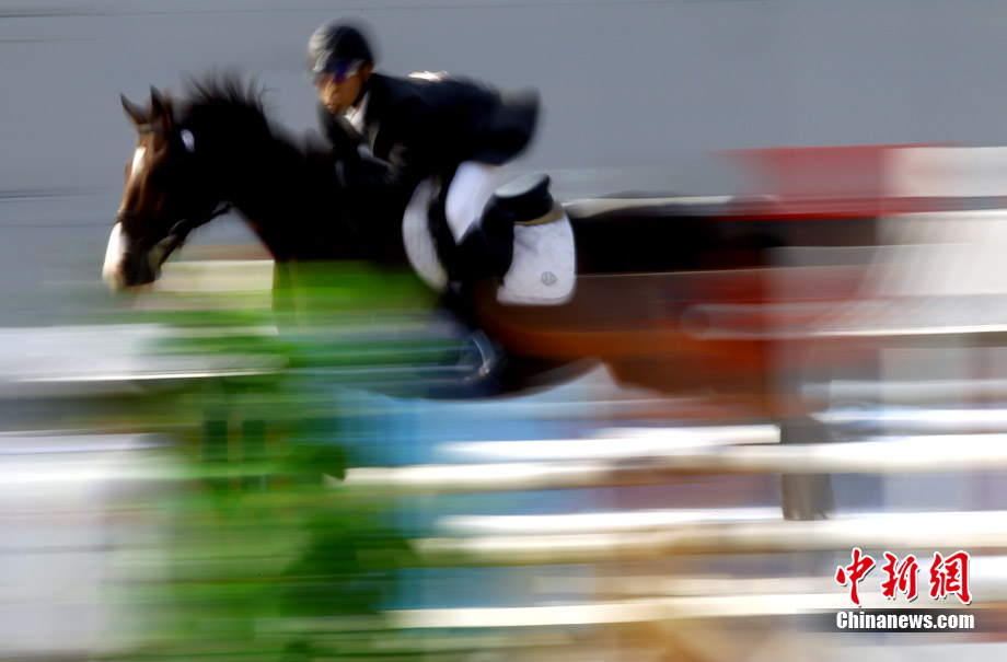2010廣州亞運(yùn)會(huì)現(xiàn)代五項(xiàng)馬術(shù)賽場精彩瞬間。中新社記者 杜洋 攝