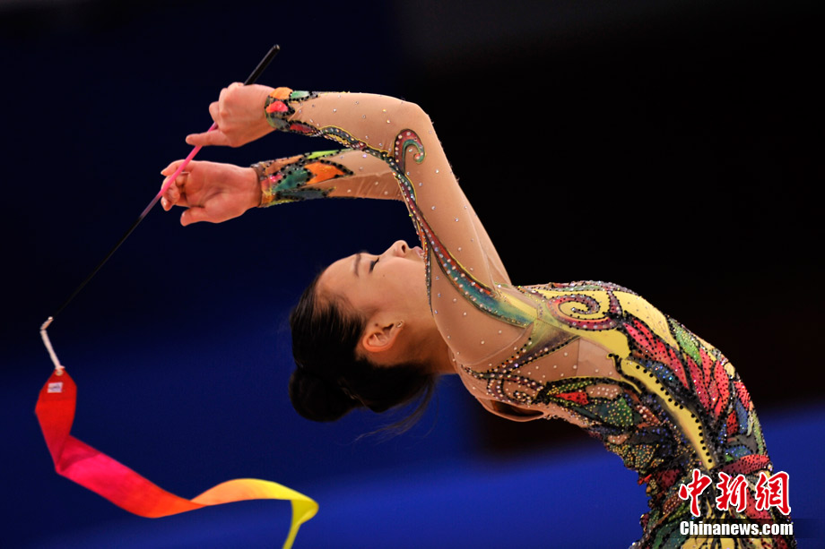 蘿莉,英文名為LOLI,本意指12歲以下的小女孩,后泛指天真可愛的小女生。15歲的韓國藝術(shù)體操選手孫妍在,憑借著修長的身材、姣好的面容,以及明亮的眼眸,一直被人稱為“藝術(shù)體操屆的金妍兒”。堪稱廣州亞運會“小蘿莉”中的NO.1。圖為孫妍在在亞運藝術(shù)體操比賽首日的精彩表現(xiàn)。中新網(wǎng)記者 金碩 攝