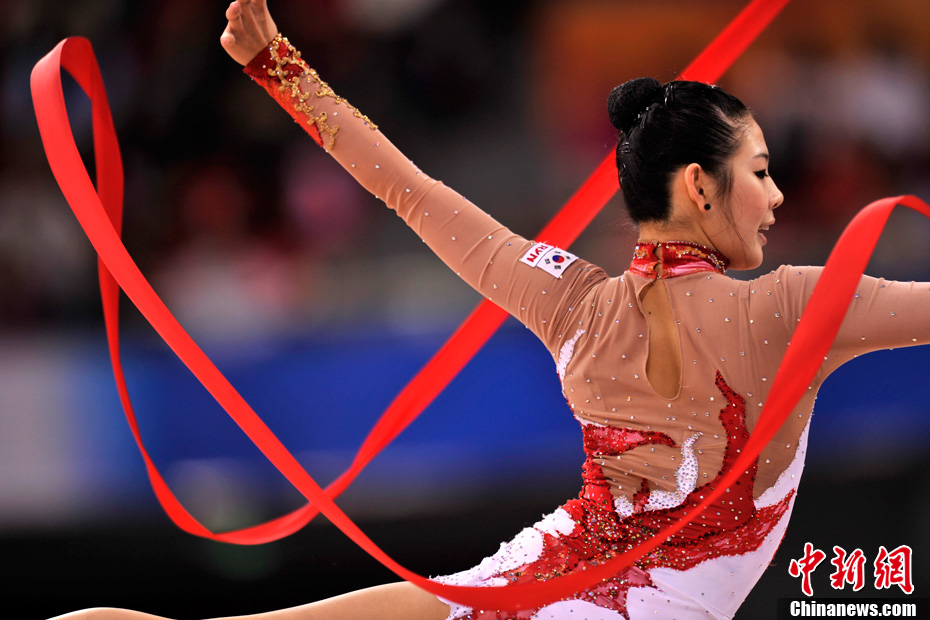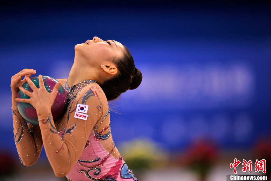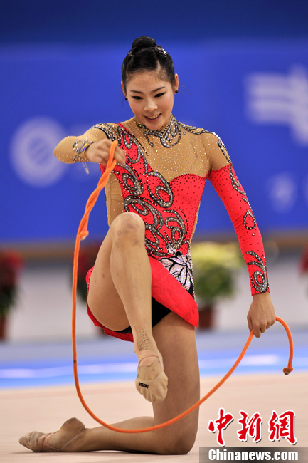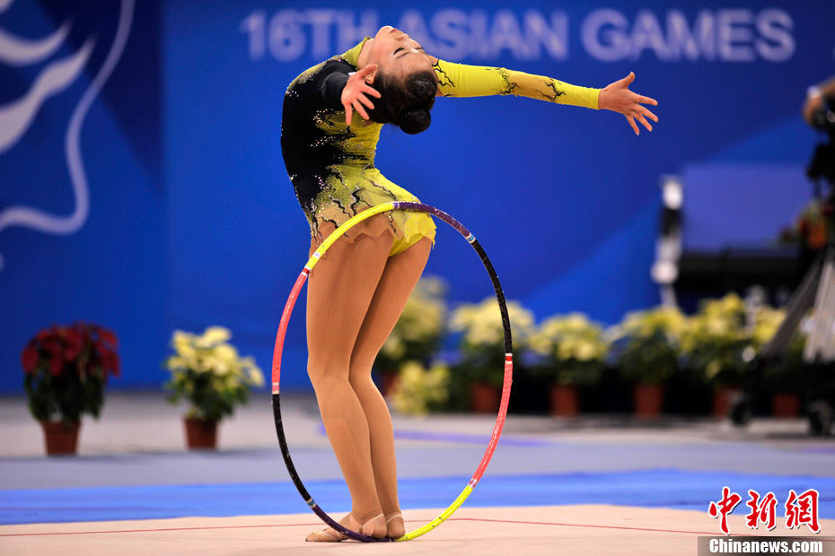 11月25日,亞運(yùn)會(huì)上最“唯美”的項(xiàng)目藝術(shù)體操正式開賽,90后的小選手們纖細(xì)曼妙的身材、柔美而富有韻律的動(dòng)作成為亞運(yùn)賽場(chǎng)最美的風(fēng)景線。中新網(wǎng)記者 金碩 攝