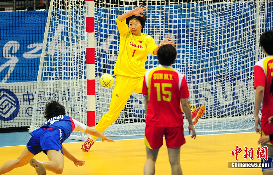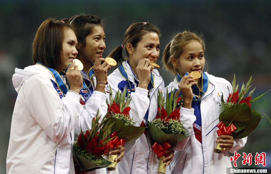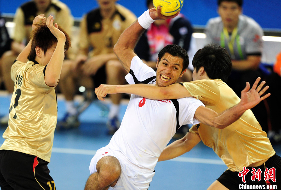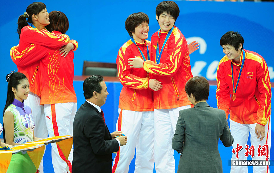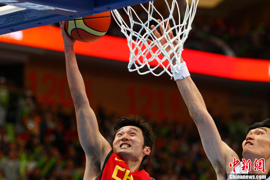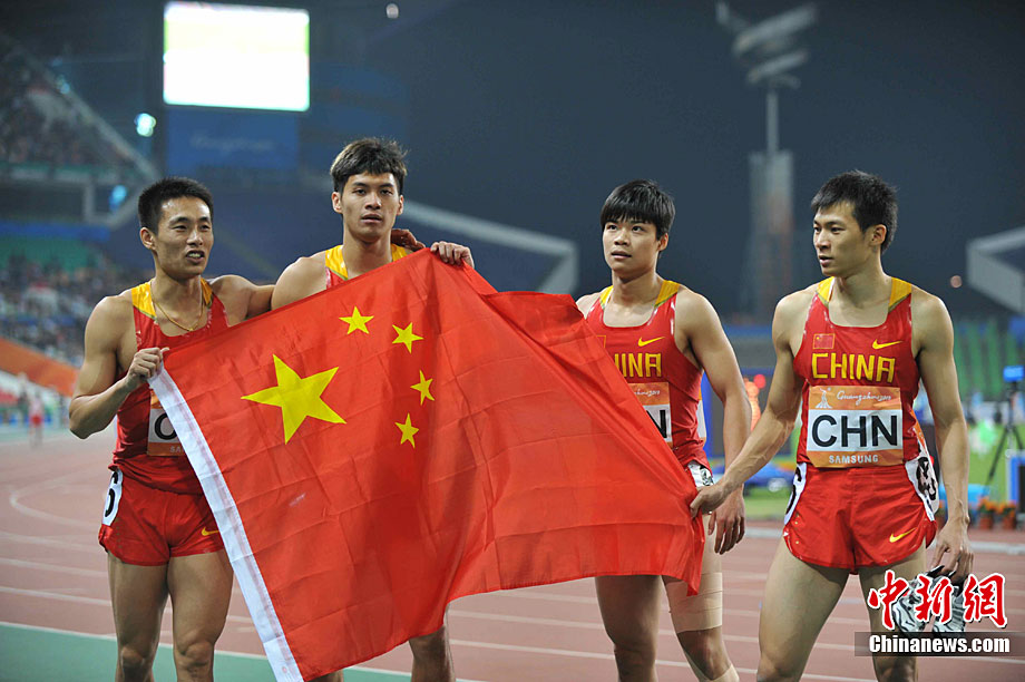 11月26日晚,2010亞運(yùn)會(huì)男籃決賽,中國(guó)隊(duì)77-71戰(zhàn)勝韓國(guó)奪冠。圖為中國(guó)隊(duì)隊(duì)員向王治郅鞠躬致意。中新社記者 富田 攝