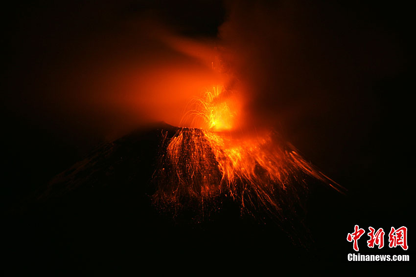 當?shù)貢r間11月27日晚,位于厄瓜多爾首都基多以南100多公里的通古拉瓦火山噴出大量熔化的巖石,氣體和火山灰。