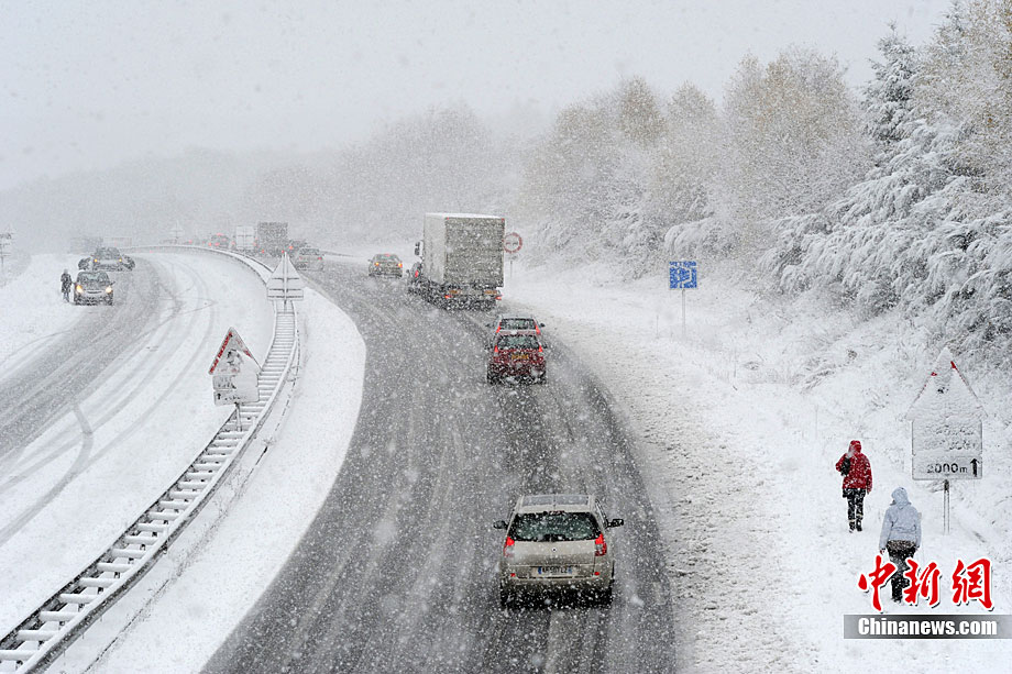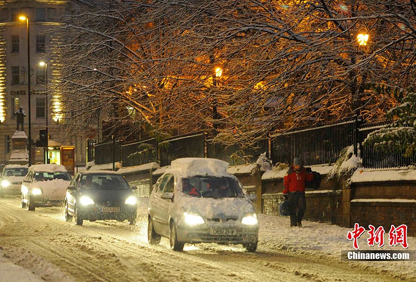 歐洲廣大地區(qū)受到嚴(yán)寒天氣侵襲,其中英國提早降下今冬第一場(chǎng)雪,是17年來最大的初雪,部分地區(qū)更刮起暴風(fēng)雪,最低氣溫達(dá)零下17攝氏度,居民生活和交通大受影響。法國、比利時(shí)、荷蘭、丹麥、德國、波蘭以至白俄羅斯均出現(xiàn)暴風(fēng)雪,預(yù)計(jì)西班牙北部也會(huì)下雪。圖為11月29日,英格蘭北部紐卡斯?fàn),汽車行駛在大雪覆蓋的道路上。