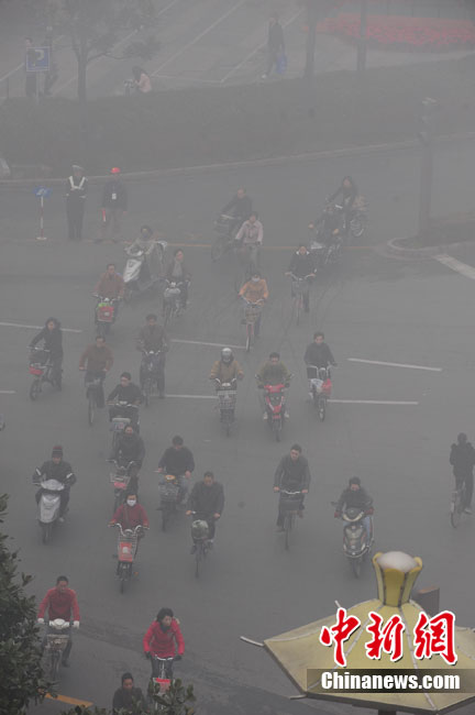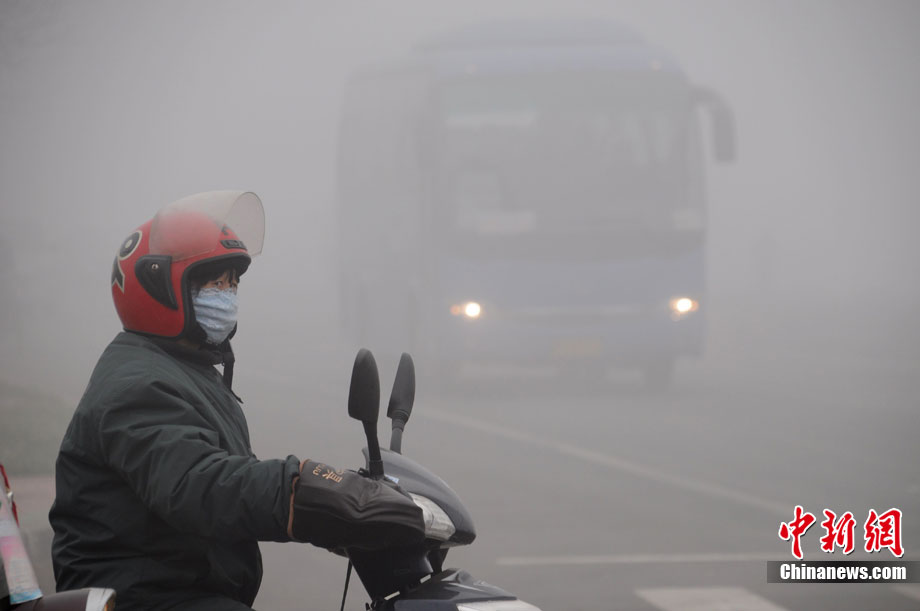 11月30日,山東濱州出現(xiàn)大霧天氣,濱州市氣象臺發(fā)布大霧黃色預警信號。張濱 攝 圖片來源:CNSPHOTO