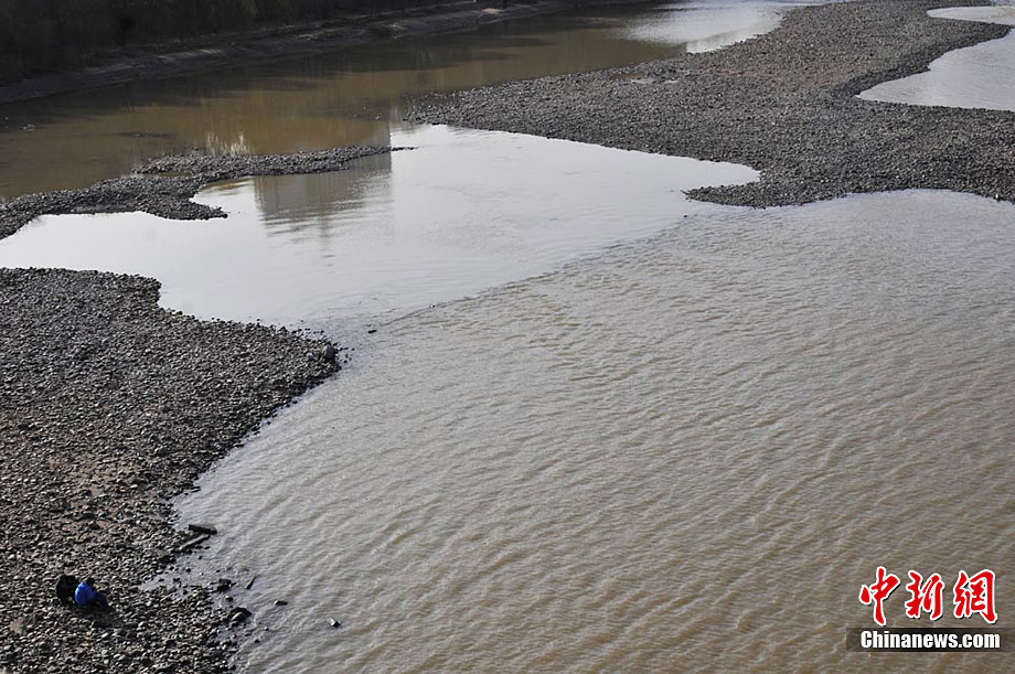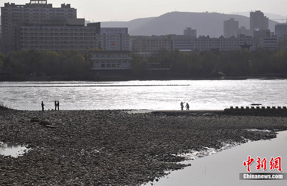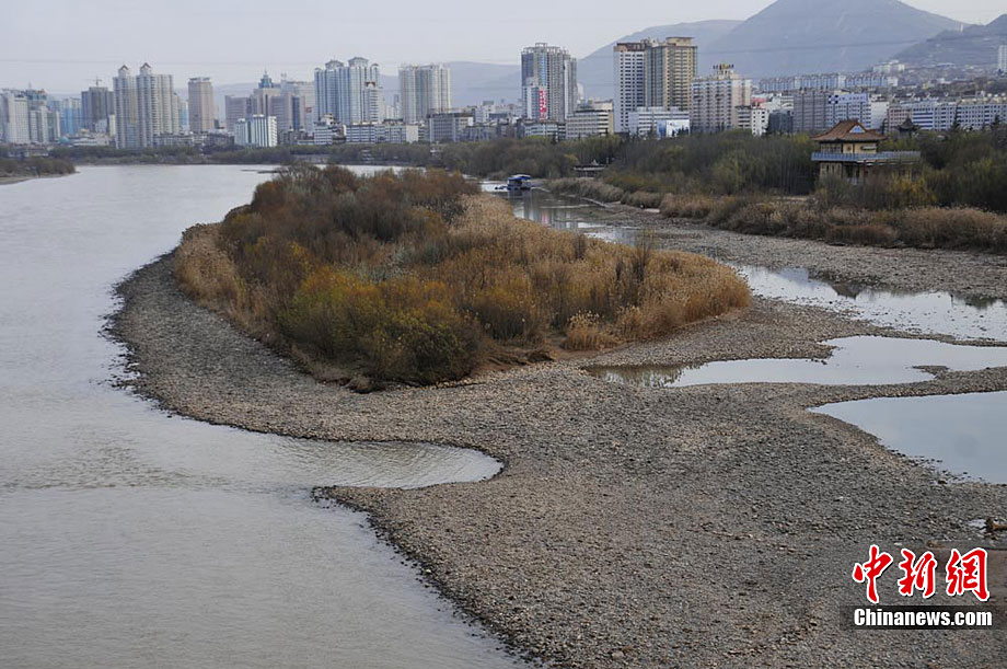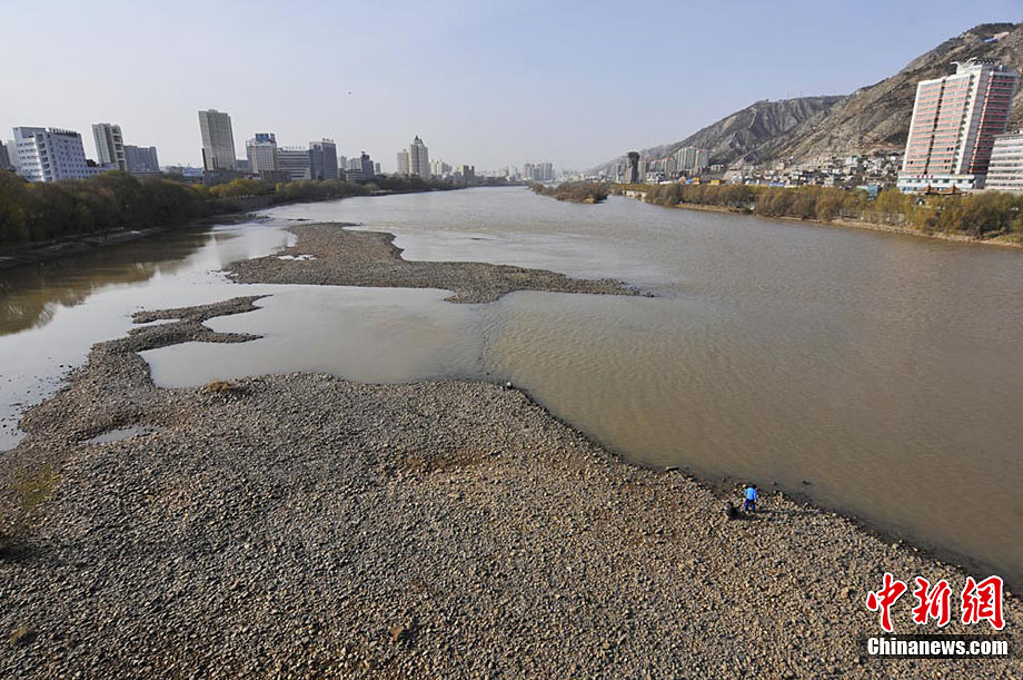 黃河蘭州段大面積河床裸露
