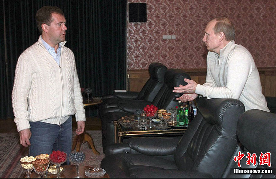在瑞士蘇黎世贏得2018年世界杯主辦權的俄羅斯總理普京,當天飛到俄羅斯黑海海濱城市索契,與正在當?shù)貢娨獯罄偫碡惐R斯科尼的俄總統(tǒng)梅德韋杰夫會合。3日晚間,梅普組合興致勃勃地一起打臺球看電影。