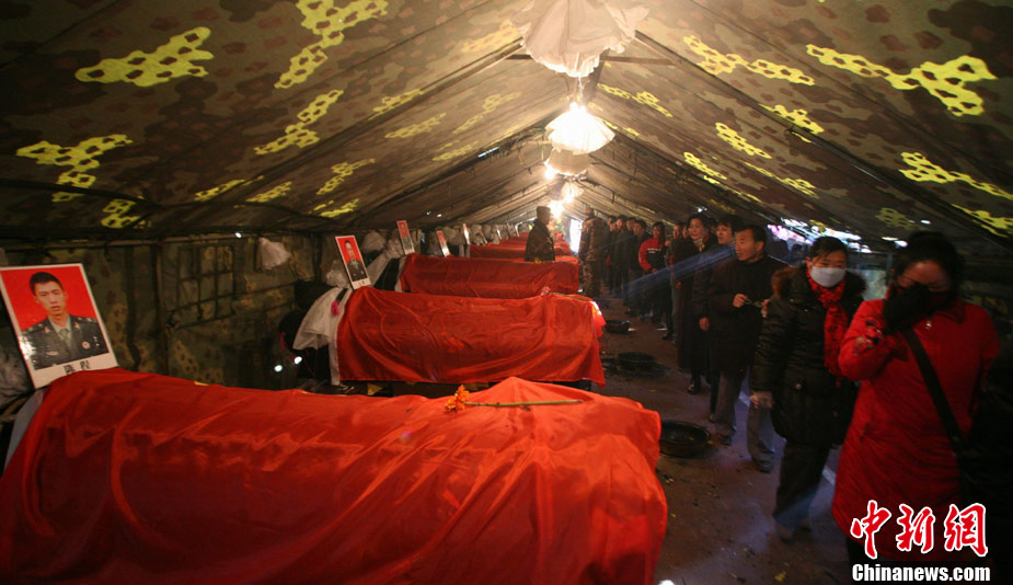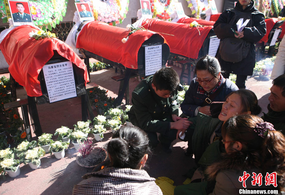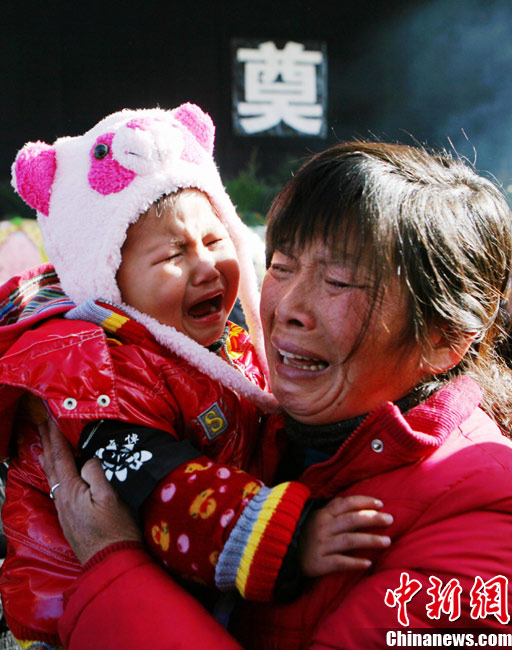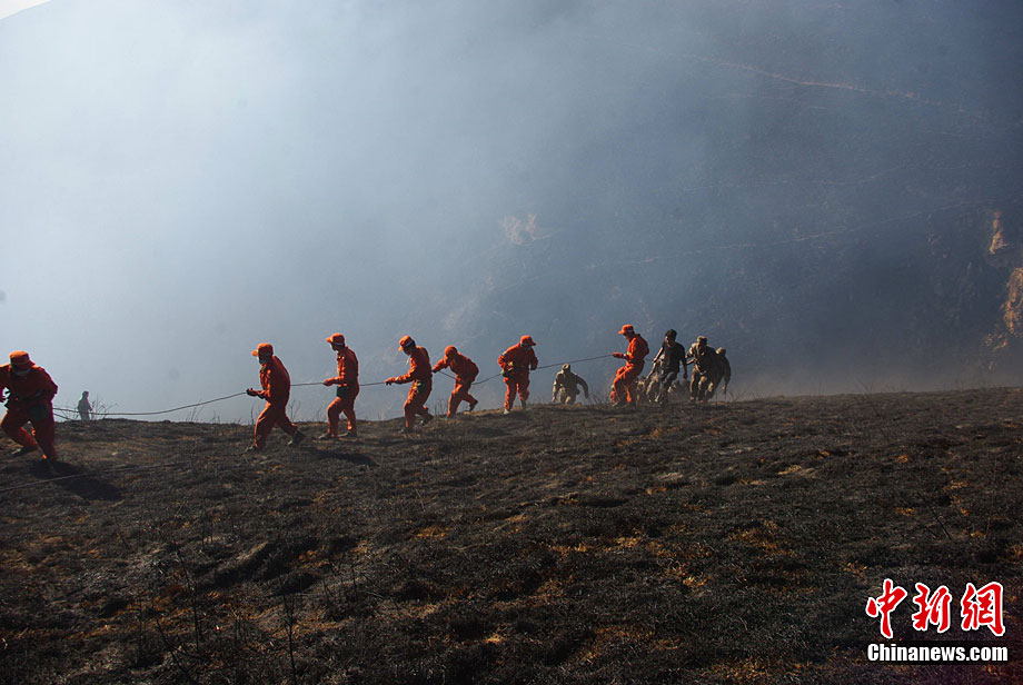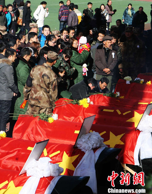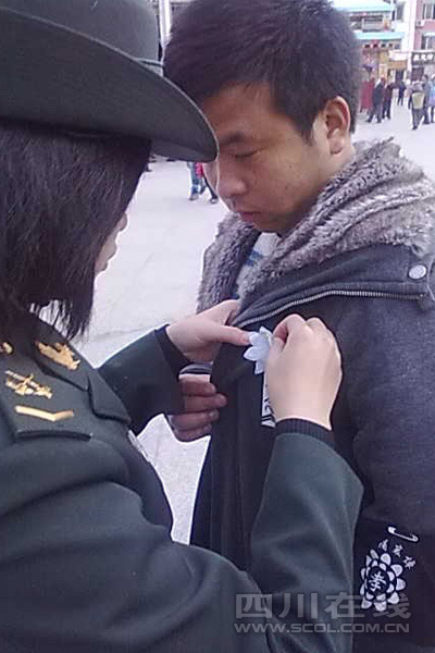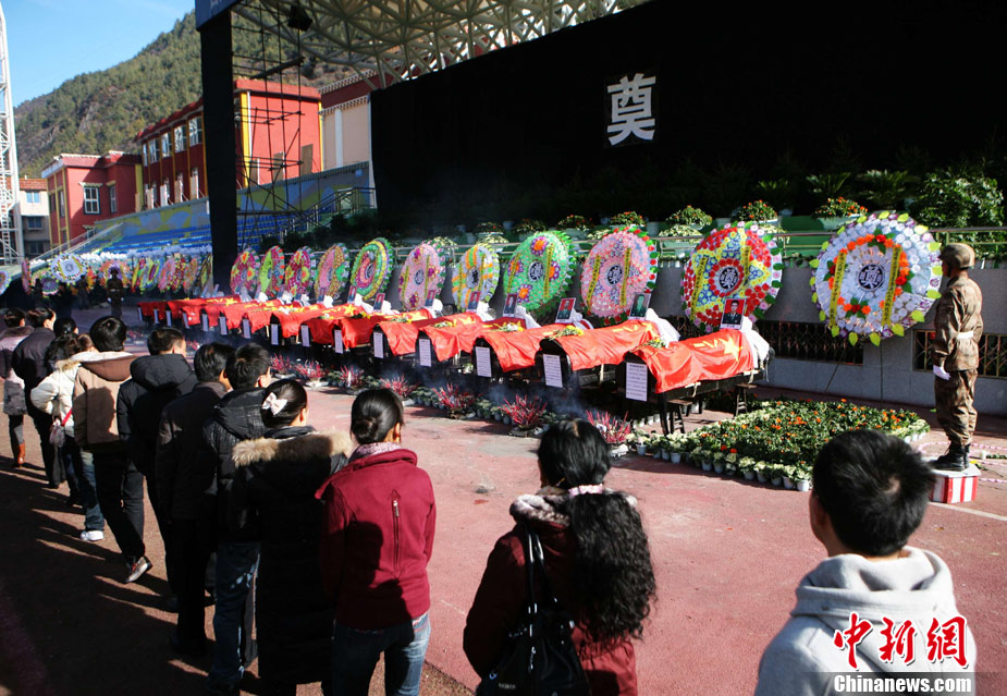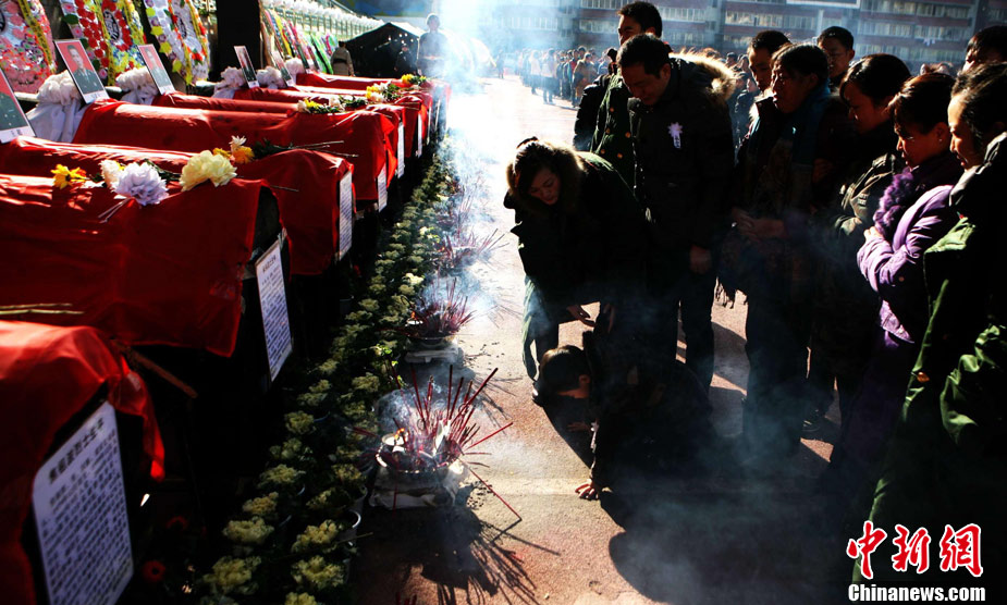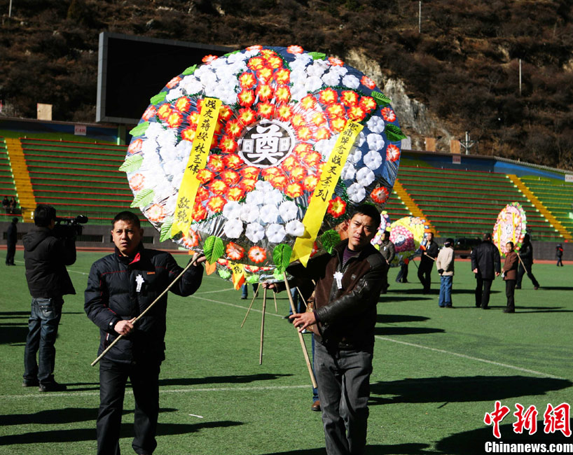 12月6日下午17時,在四川道孚救火中犧牲的15位英雄靈柩起運送往康定火化,上萬民眾胸帶白花來到英雄路過的川藏線國道317線道孚城區(qū)段送別英雄。圖為道孚縣民眾痛別英雄。