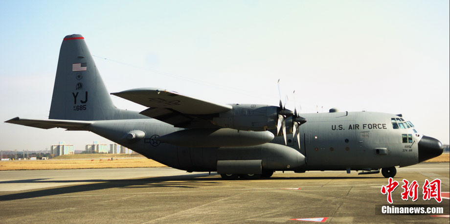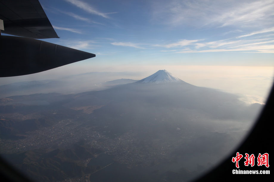 12月6日,為期8天的日美聯(lián)合軍演進入第四天,駐日美軍橫田航空基地C-130H型“大力神”運輸機參與演習中的空中防御和護航演練。圖為C130在演習中途經(jīng)富士山。中新社發(fā) 孫冉 攝