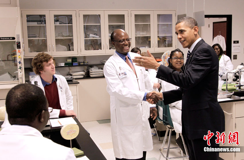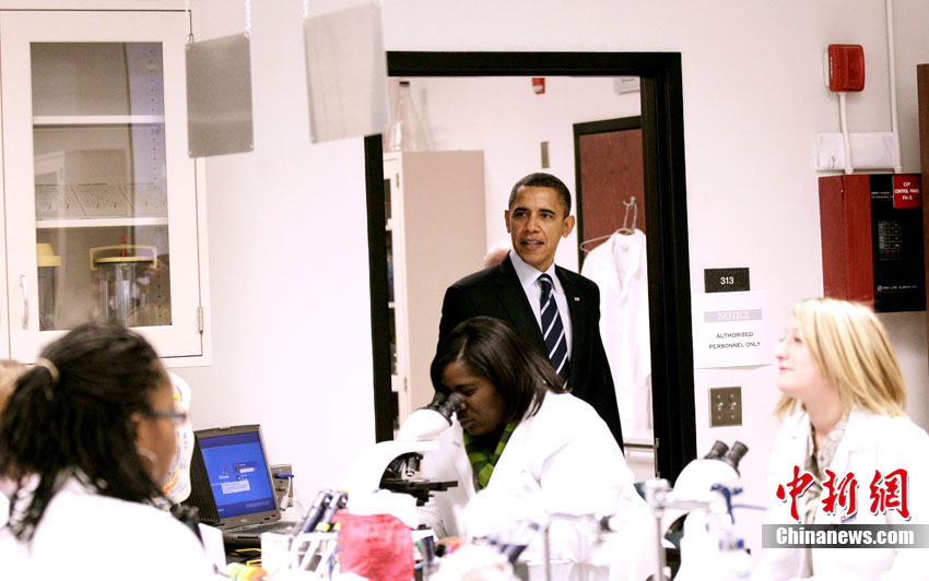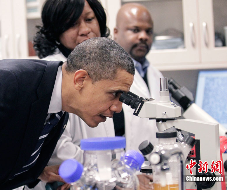 當(dāng)?shù)貢r(shí)間12月6日,美國(guó)總統(tǒng)奧巴馬訪問北卡羅萊納州,并參觀了該州的一處社區(qū)大學(xué)實(shí)驗(yàn)室。