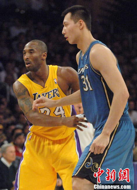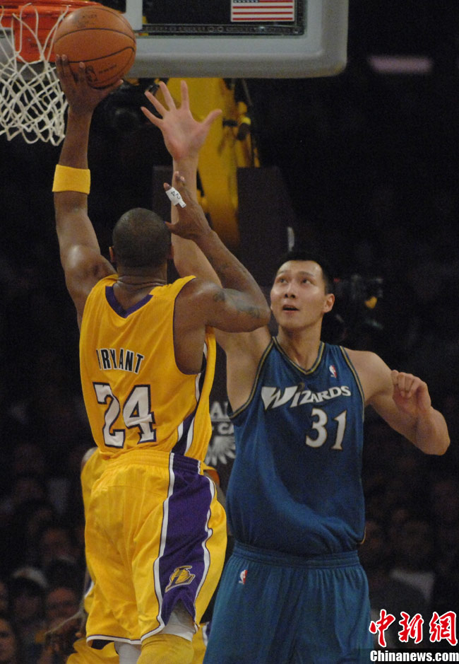當?shù)貢r間12月7日晚,華盛頓奇才隊在洛杉磯客場挑戰(zhàn)洛杉磯湖人隊,由于奇才主力前鋒安德雷賽前左臀撞傷,中國球員易建聯(lián)先發(fā)上陣,這是易建聯(lián)本賽季首次先發(fā)。上半場奇才以56比69落后,易建聯(lián)拿下5分。中新社發(fā) 張煒 攝