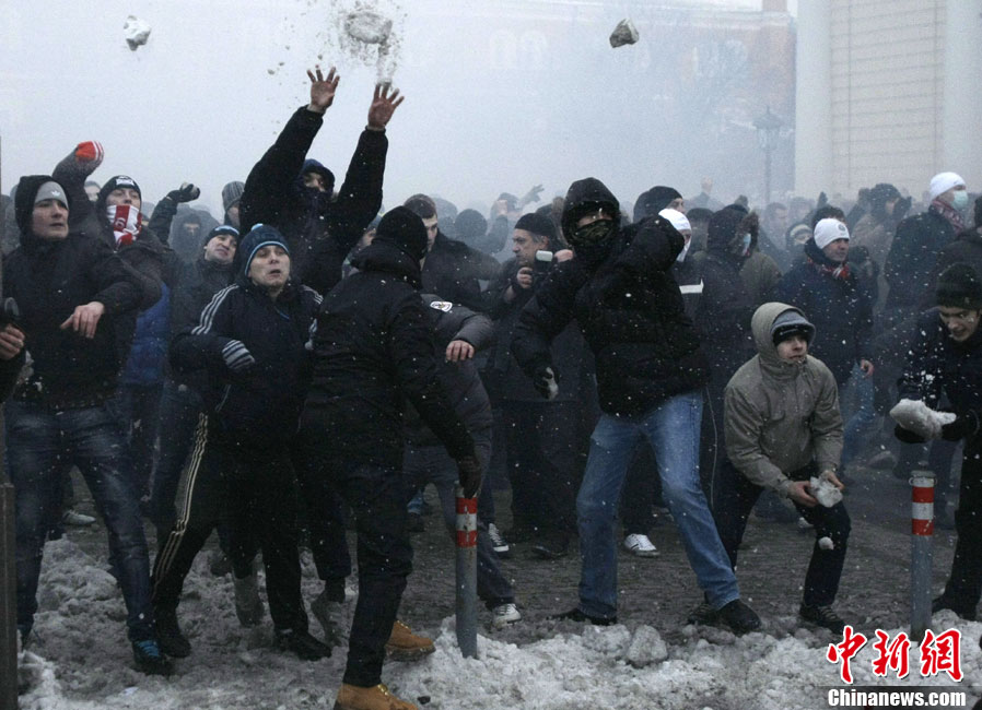 12月11日,俄羅斯首都莫斯科發(fā)生大規(guī)模球迷騷亂。 騷亂直接原因是此前于12月6日發(fā)生在市內(nèi)的一起斯巴達(dá)克俱樂部球迷與高加索人之間的群毆事件。事件導(dǎo)致一名斯巴達(dá)克俱樂部球迷死亡,11日中午,一些球迷聚集到莫斯科市中心馬涅什廣場,聲稱為死亡球迷舉行悼念儀式,從而最終引發(fā)了目前這場有多達(dá)5萬名球迷參與的騷亂。