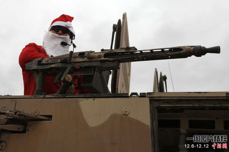 12月6日(周一),一名身著圣誕老人服裝的德國(guó)士兵乘坐在裝甲車上前往阿富汗昆都士執(zhí)行任務(wù)。