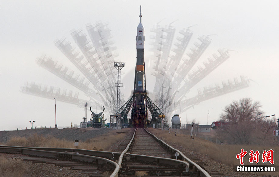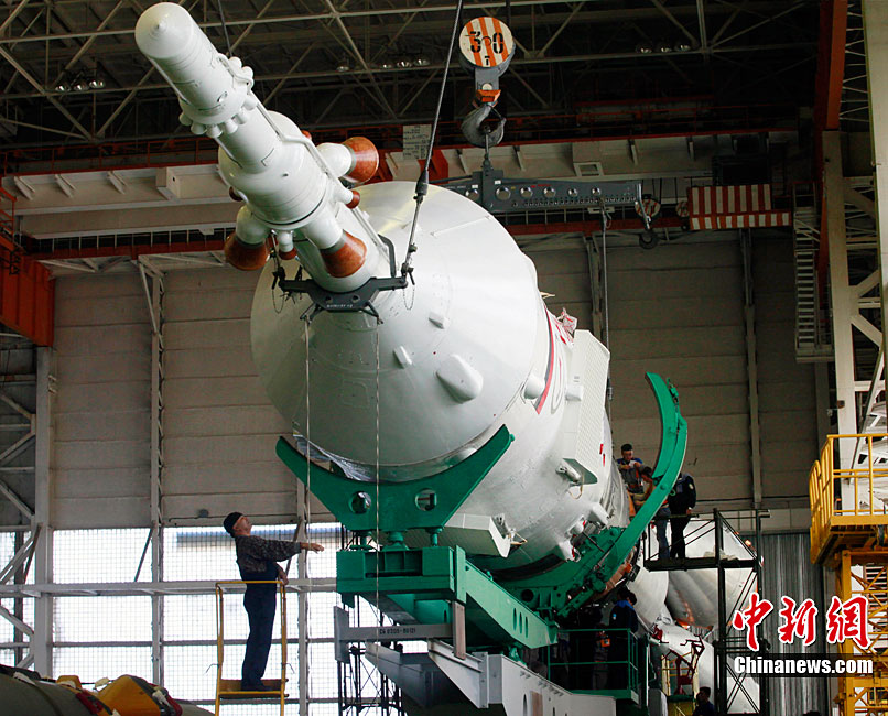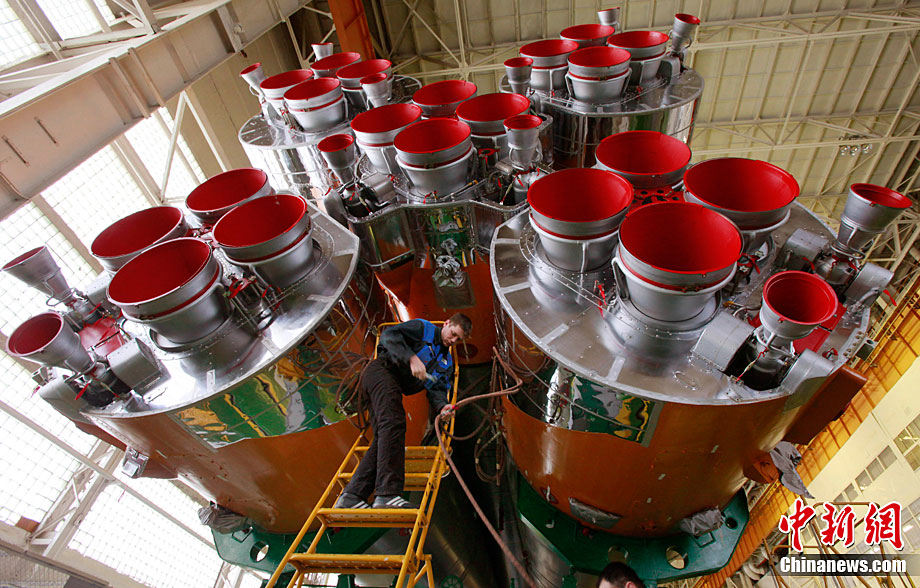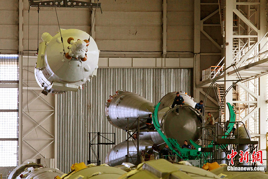 當(dāng)?shù)貢r(shí)間12月12日,哈薩克斯坦拜科努爾航天中心,俄羅斯聯(lián)盟TMA-20載人火箭在發(fā)射場(chǎng)內(nèi)的裝配車間接受升空前的檢查。俄羅斯新聯(lián)盟號(hào)將在12月15日前往國際空間站。