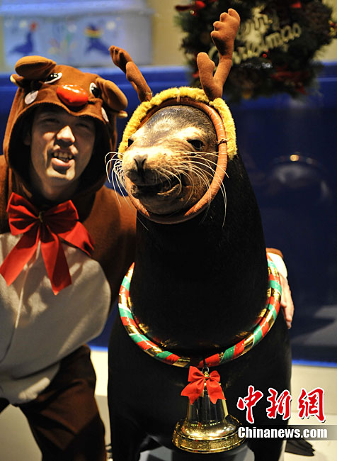 當地時間12月13日,日本東京一家水族館內的海洋動物進行了一場精彩的圣誕表演。海豹、海豚為現場觀眾送去了一件件圣誕禮物。
