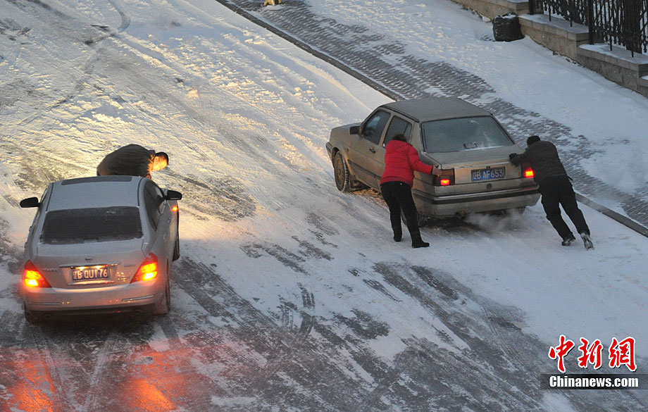 12月13日,山東降下今冬首場大范圍雨雪,并伴有大風(fēng)降溫,山東省氣象臺(tái)發(fā)布海上大風(fēng)黃色預(yù)警信號(hào)和寒潮藍(lán)色預(yù)警信號(hào),預(yù)計(jì)最低溫可達(dá)-12℃。部分高速路關(guān)閉,降雪在帶來交通不便的同時(shí),對山東的旱情有所緩解。董乃德 攝 圖片來源:CNSPHOTO