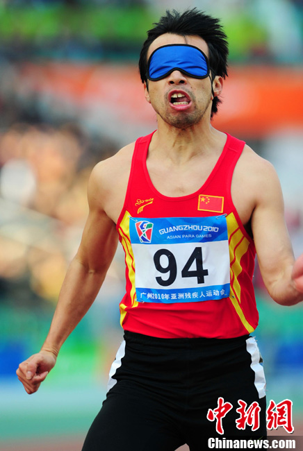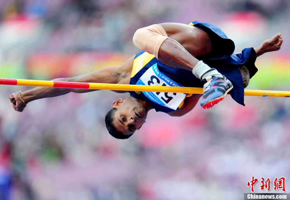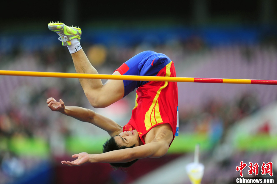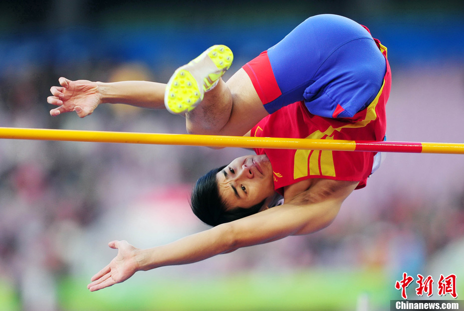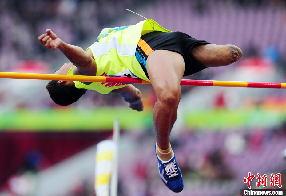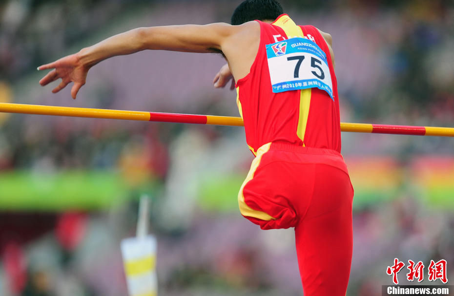 12月16日,廣州2010年亞殘運(yùn)會(huì)田徑賽進(jìn)入第3天,廣州遭遇寒流來襲氣溫降到最低2度,最高氣溫僅7度,亞洲選手在寒冷的氣候條件下參賽。圖為中國(guó)跳高選手李小文在比賽中。中新社記者 陳文 攝