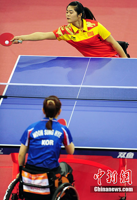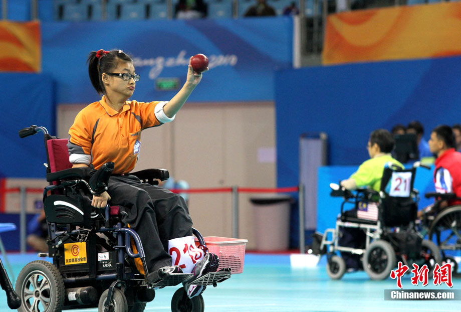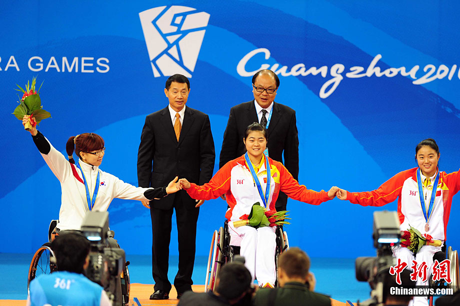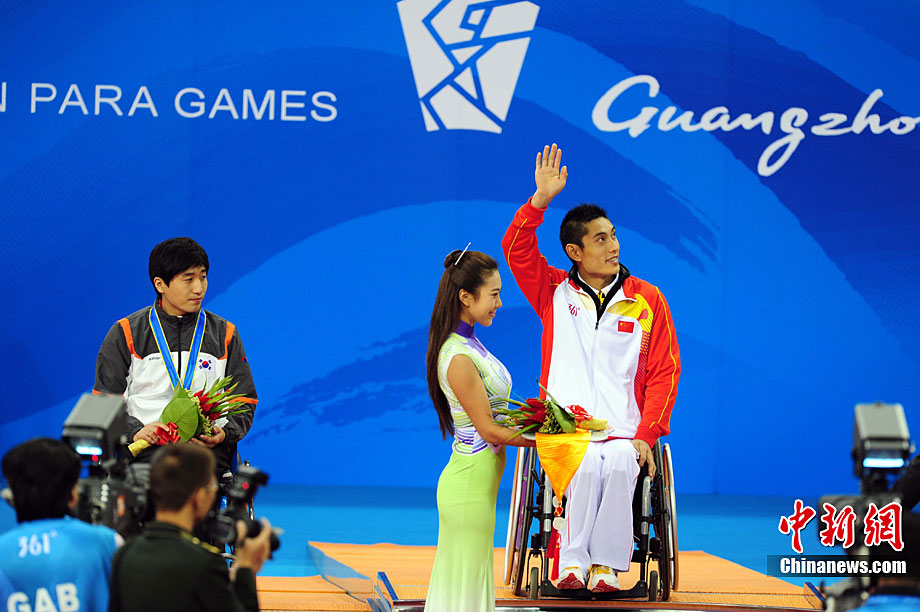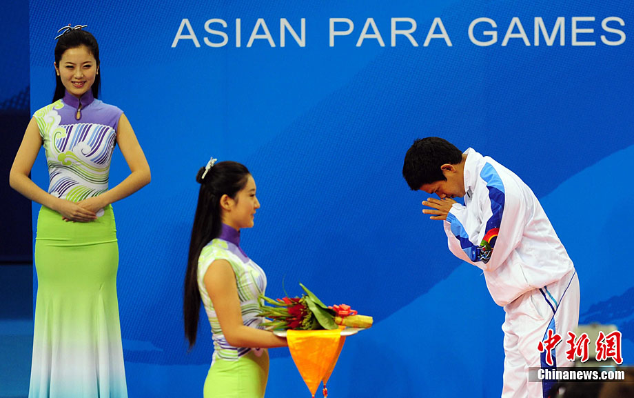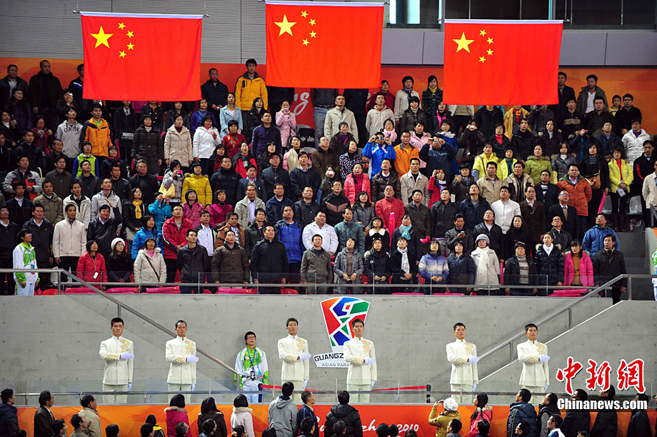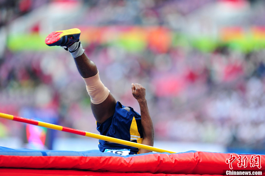 12月16日,廣州2010年亞殘運(yùn)會(huì)田徑賽進(jìn)入第3天,廣州遭遇寒流來襲氣溫降到最低2度,最高氣溫僅7度,亞洲選手在寒冷的氣候條件下參賽。圖為中國(guó)跳高選手李小文在比賽中。中新社記者 陳文 攝