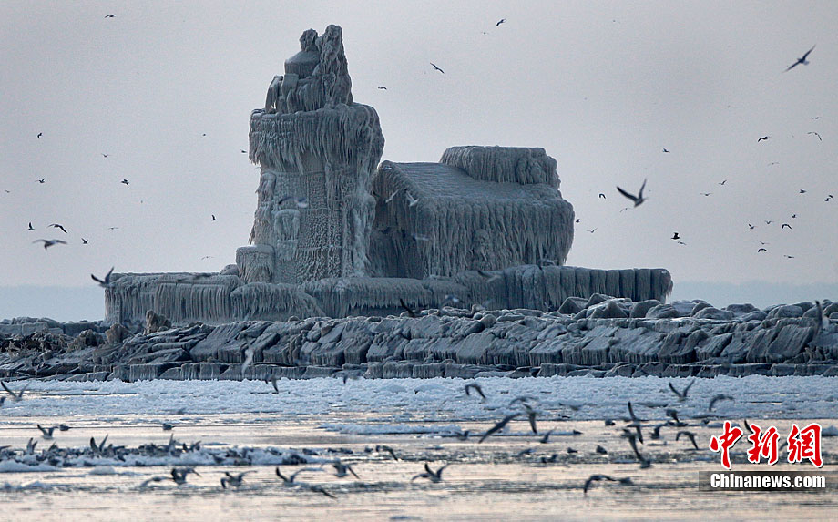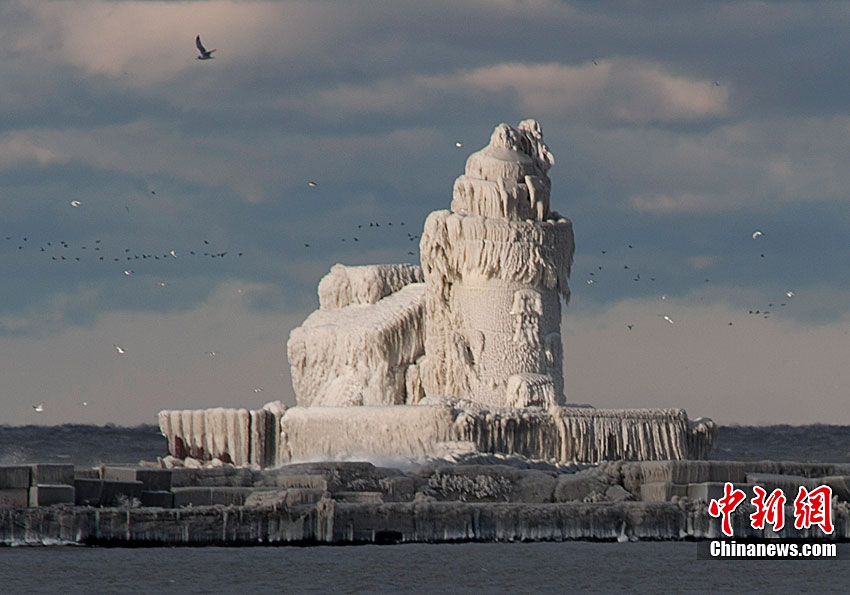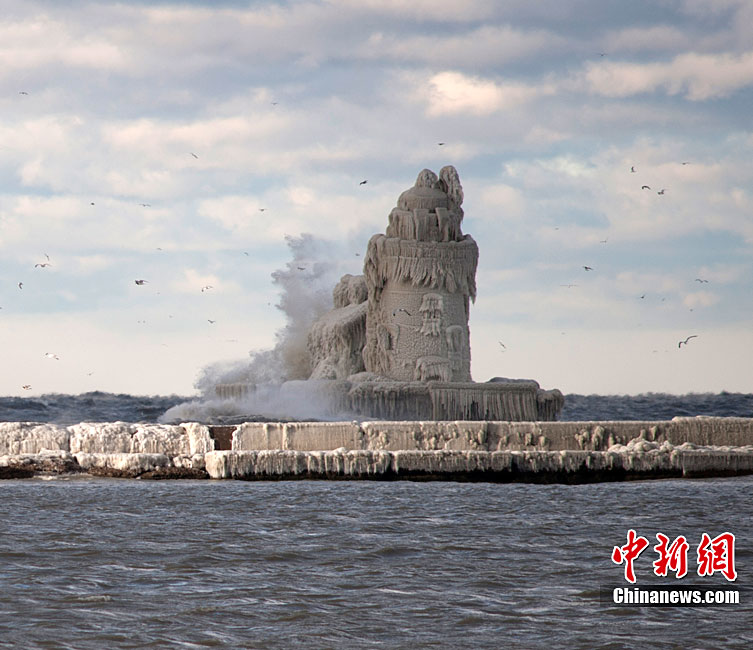 受暴風(fēng)雪影響,一座位于美國俄亥俄州伊利湖克利夫蘭港的燈塔近日完全被冰層覆蓋,從遠處望去,仿佛一座冰雪雕刻的中世紀古堡。