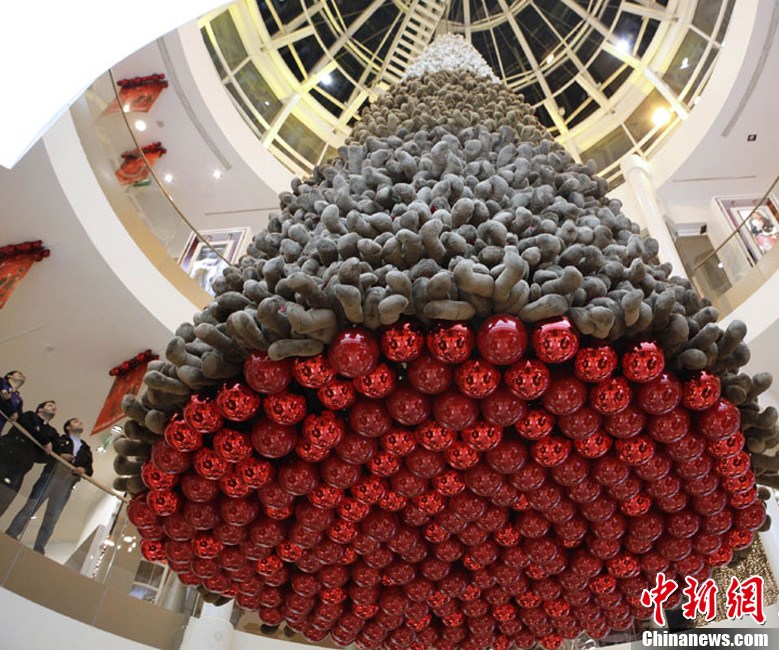 12月20日,在黎巴嫩首都貝魯特一家商場,上千只泰迪熊組成的圣誕樹狀裝飾物懸掛在天花板上。在圣誕即將到來之際,黎巴嫩首都貝魯特舉行了一項名為“小小的熊,大大的心”的慈善活動,出售2000只泰迪熊的收益將會捐給黎巴嫩的自閉癥患者。