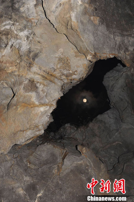 12月22日凌晨,廣東肇慶七星巖“出米洞”景區(qū)冬至日出現(xiàn)“頭上有明月,腳下無暗影”月光垂照山洞的奇趣天文地理景象,吸引了北京、廣州、肇慶三地天文地理氣象科研人員。中國科學院國家天文臺研究員張濟同稱,月亮垂照出米洞奇觀必須符合滿月時分,冬至日,月亮必須到達北緯23°08′上空三個條件。他說,下一次出米洞看月光垂照要等19年,本世紀100年僅可能看到6次這樣的奇觀。圖為冬至日凌晨的端州出米洞上空的月亮。