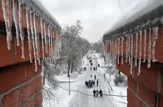一場暴風(fēng)雪26日撲向美國東北部的新澤西州、紐約市等地,同時伴有時速達到四五十哩的勁風(fēng),預(yù)計26日及27日為這些地區(qū)帶來十英寸左右的積雪。公路行車危險大增,卷起的漫天白雪可能造成航班嚴重誤點,導(dǎo)致華盛頓、紐約和波士頓機場近日取消航班。圖為紐約法拉盛街頭掃雪車正在清理公路積雪。中新社記者 孫宇挺 攝