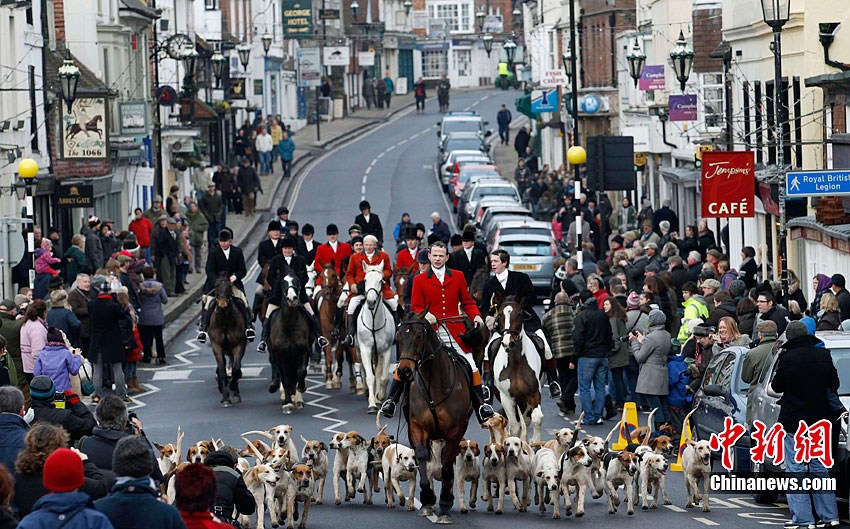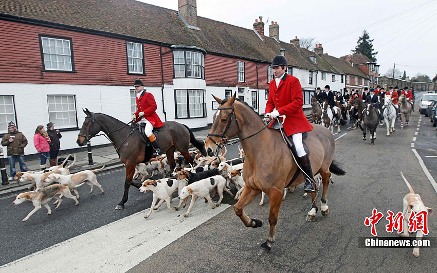當(dāng)?shù)貢r間12月27日,英格蘭東南部肯特郡舉行了盛大的節(jié)禮日狩獵活動開幕式。眾多英國傳統(tǒng)狩獵愛好者攜帶獵犬參加了這一活動。