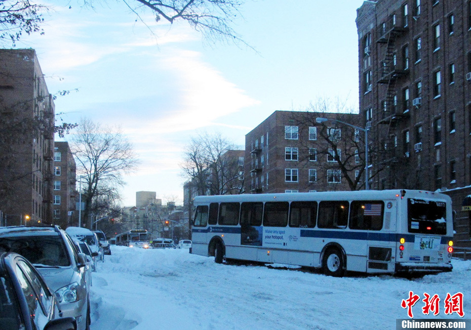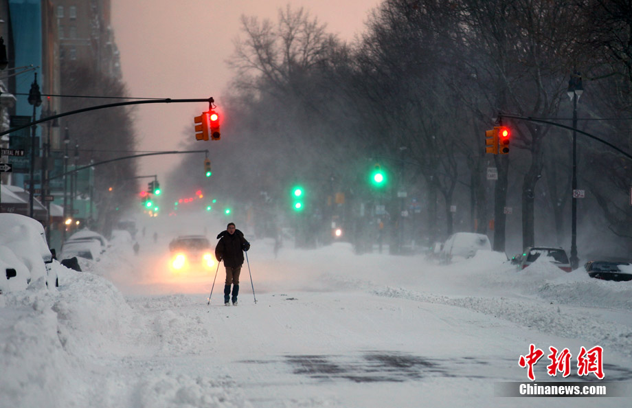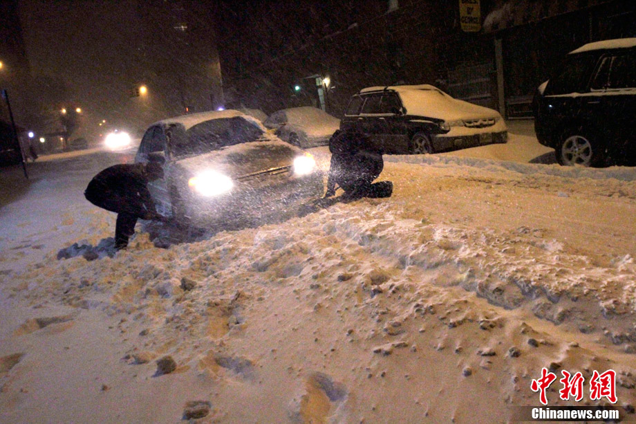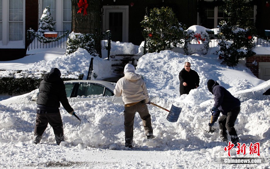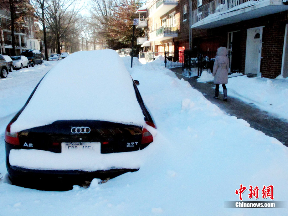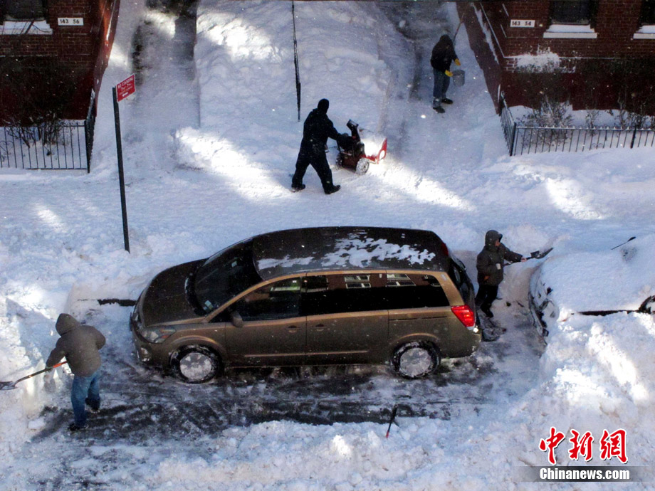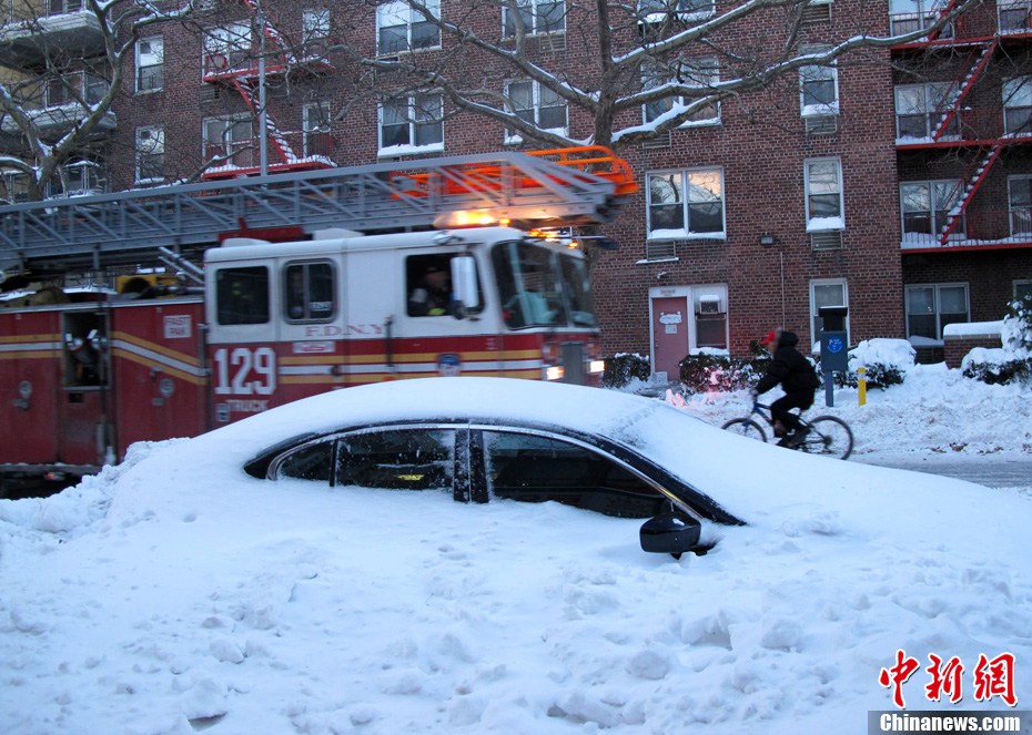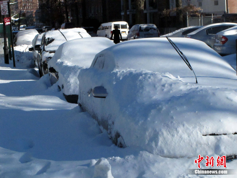 2010年12月27日,美國(guó)紐約,停在路邊的車輛陷入雪堆。暴風(fēng)雪26日襲擊美國(guó)東海岸,紐約市區(qū)積雪達(dá)到50厘米,全市交通陷入困境。 中新社記者 孫宇挺 攝