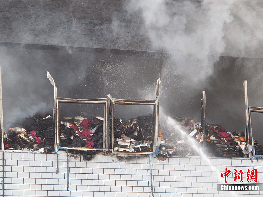 12月28日上午10時50分許,浙江省義烏市知名企業(yè)浪莎集團倉庫樓發(fā)生火災。因火勢較大,金華消防總共出動了三十幾輛消防車參與救火,倉庫內(nèi)9名工作人員均已安全疏散,確定無人員傷亡情況。張茵 攝