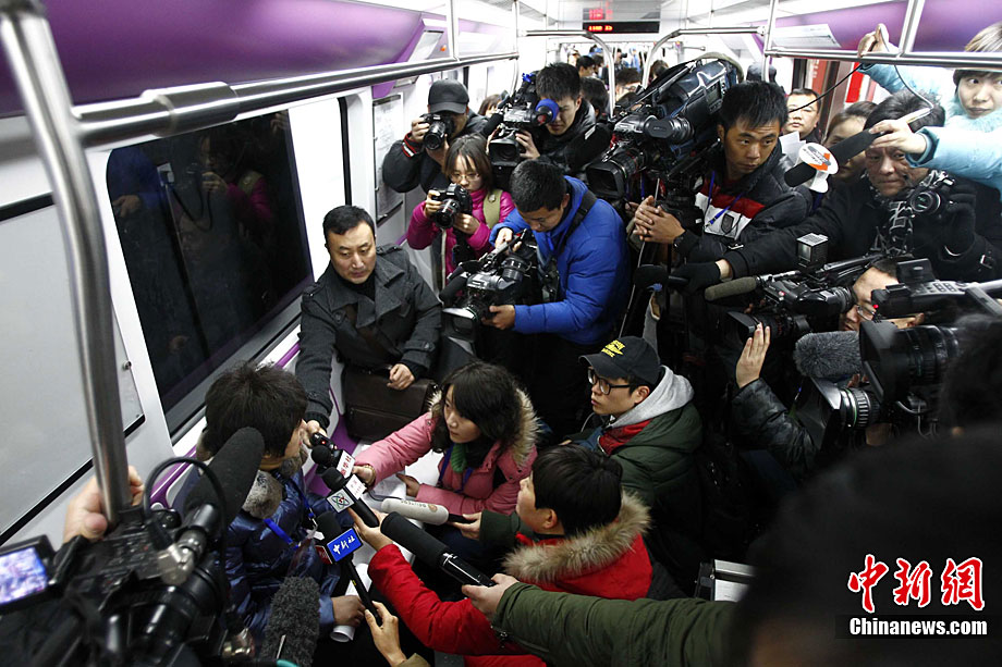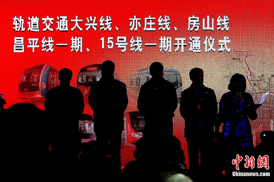 12月30日,北京5條地鐵新線開門迎接乘客。這5條地鐵線路包括房山線、昌平線一期、15號線一期、亦莊線和大興線,總長度達(dá)108公里。上述地鐵線路全部開通后,北京市軌道交通運營里程將首次突破300公里。中新社記者 富田 攝