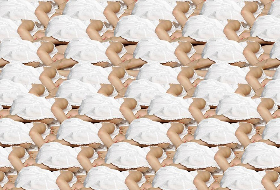 德國藝術(shù)家、攝影師Claudia Rogge,他非常癡迷圖案造型,也許你喜歡的圖案是類似于花紋或者墻紙那種,但他卻喜歡用人來組合圖案造型。他的這種癡迷促使他完成這個(gè)大手筆的制作:大量的模特?cái)[著相似的姿勢,穿著相同的衣服,組成了稍顯恐怖的人體圖案。不可否認(rèn)的是,他的部分作品使用了后期特效。