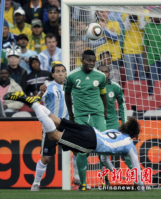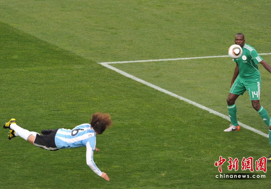 12日晚進行的一場南非世界杯B組小組賽中,阿根廷迎來首個對手尼日利亞。憑借海因策在上半場第6分鐘的一次漂亮的魚躍沖頂,阿根廷隊1-0擊敗尼日利亞,在南非世界杯的征途上取得開門紅。