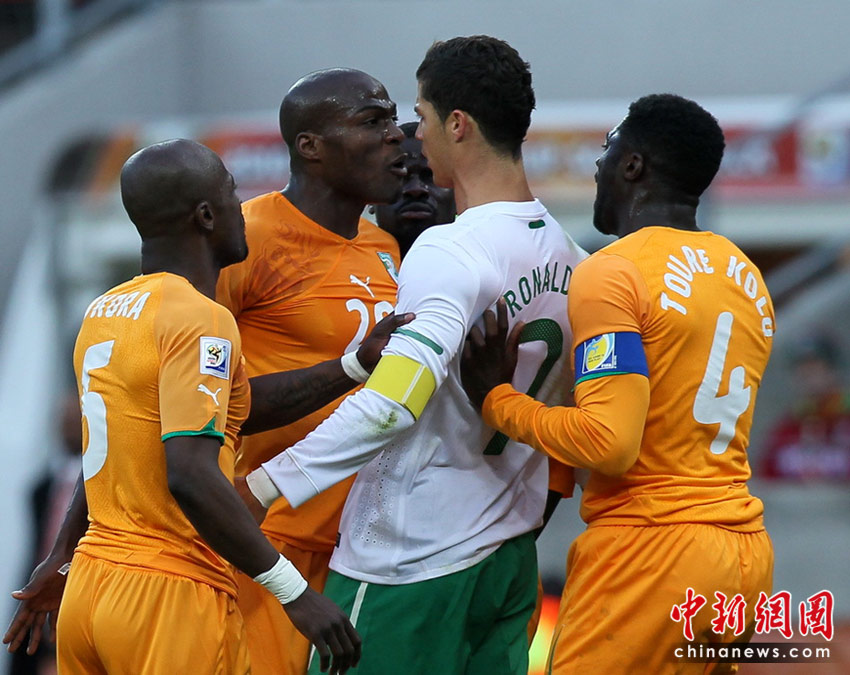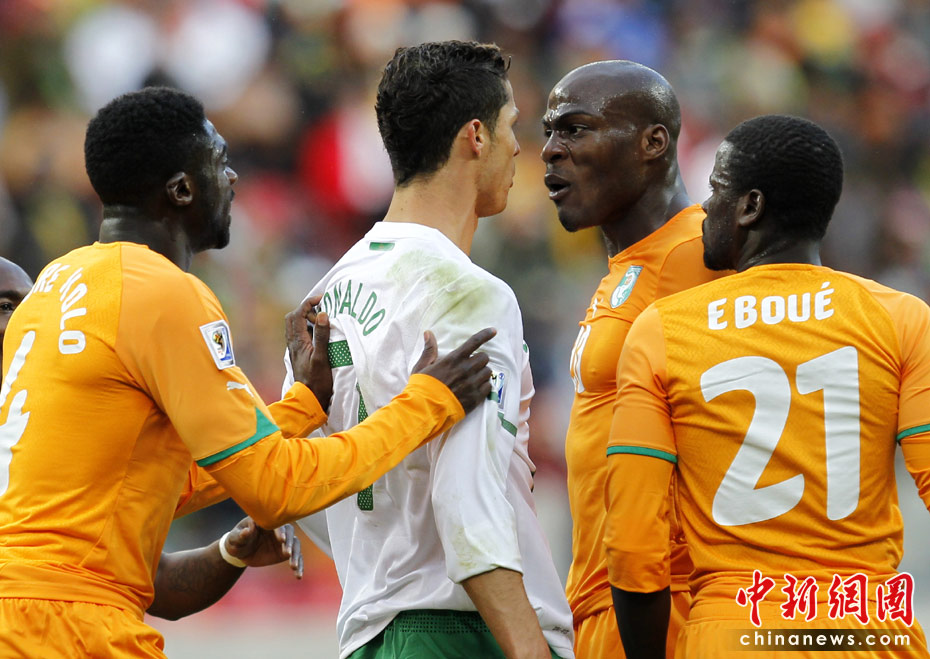 北京時間6月15日晚22點,第19屆世界杯小組賽G組打響首輪爭奪。科特迪瓦隊在伊麗莎白港的納爾遜-曼德拉灣球場迎戰(zhàn)歐洲勁旅葡萄牙隊。C·羅上半場擊中門柱成為本場比賽唯一亮點,科特迪瓦“魔獸”德羅巴未首發(fā)、。直到比賽進行到65分鐘,德羅巴才被替換上場。最終經(jīng)過90分鐘悶戰(zhàn),兩隊0-0握手言和。