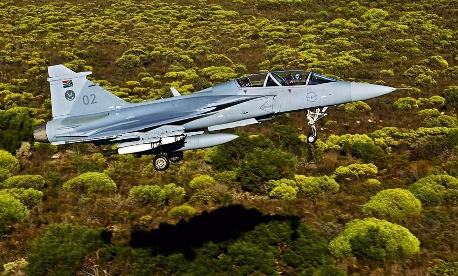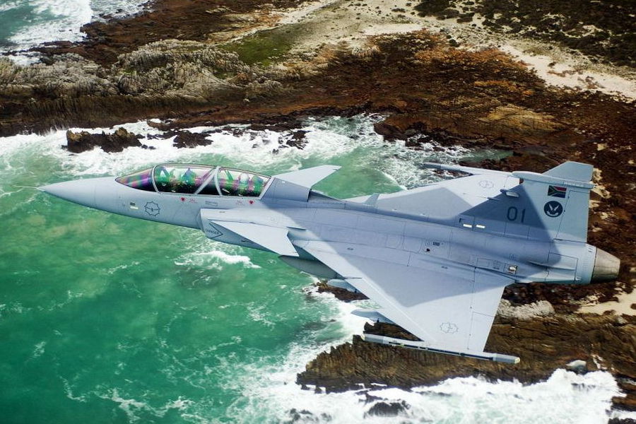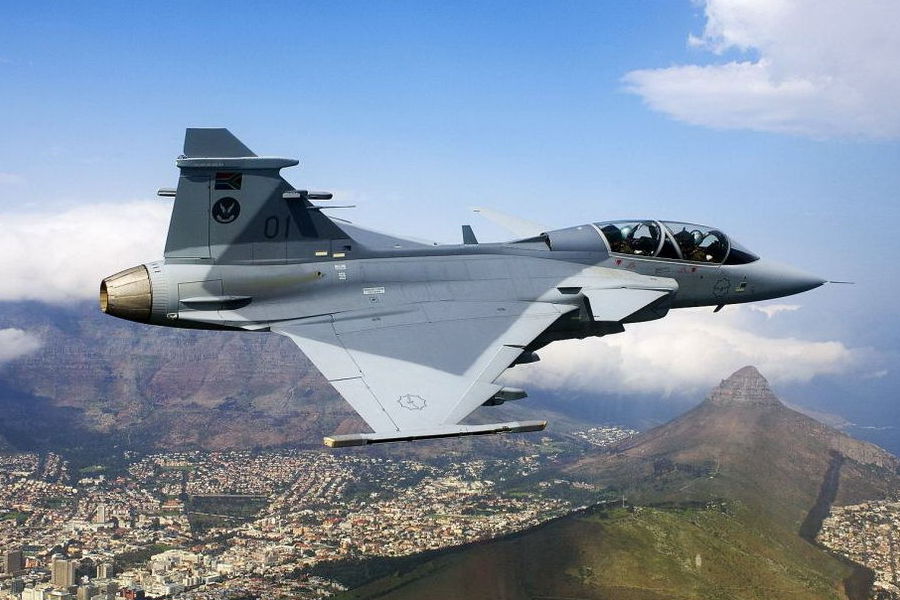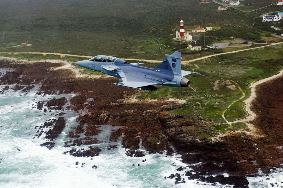 南非空軍五架“銀隼”戰(zhàn)斗機(jī)和“鷹獅”戰(zhàn)斗機(jī)在世界杯開幕式上從足球城球場(chǎng)上空飛過,進(jìn)行了炫目的飛行表演,從而拉開了世界杯開幕式的序幕。圖片來(lái)源:中國(guó)軍網(wǎng)