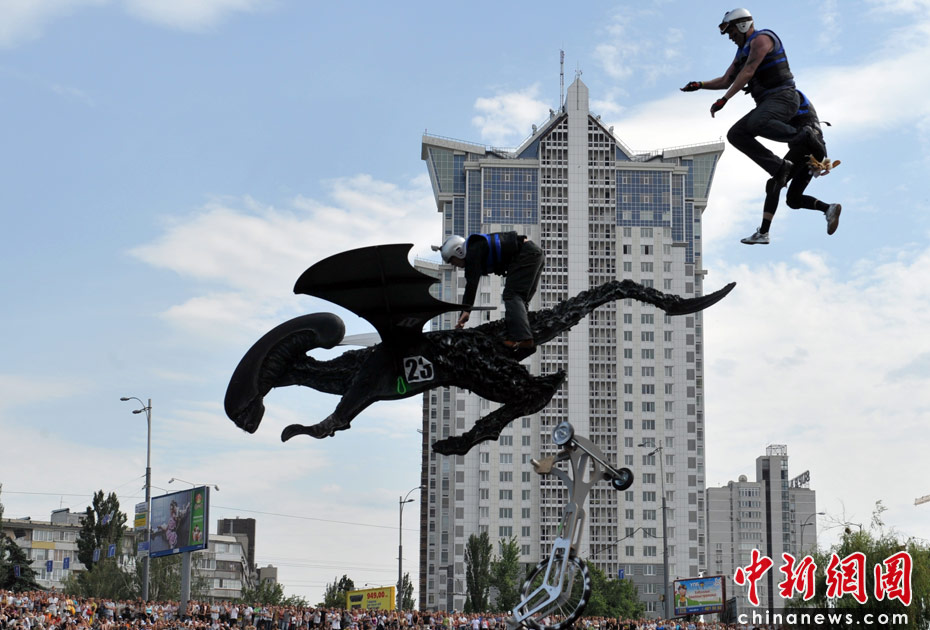 6月19日,烏克蘭首都舉辦2010紅牛杯“鳥(niǎo)人”大賽,約有39支隊(duì)伍參加了自制飛行器滑翔大賽。