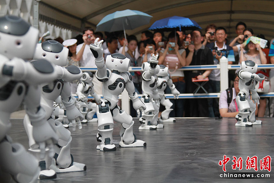 6月21日,上海世博會(huì)法國(guó)館展示的機(jī)器人首次在展館外入口處表演“舞蹈”。當(dāng)天是世博法國(guó)國(guó)家館日,館方還舉行系列了慶典活動(dòng)。中新社記者 殷春永 攝