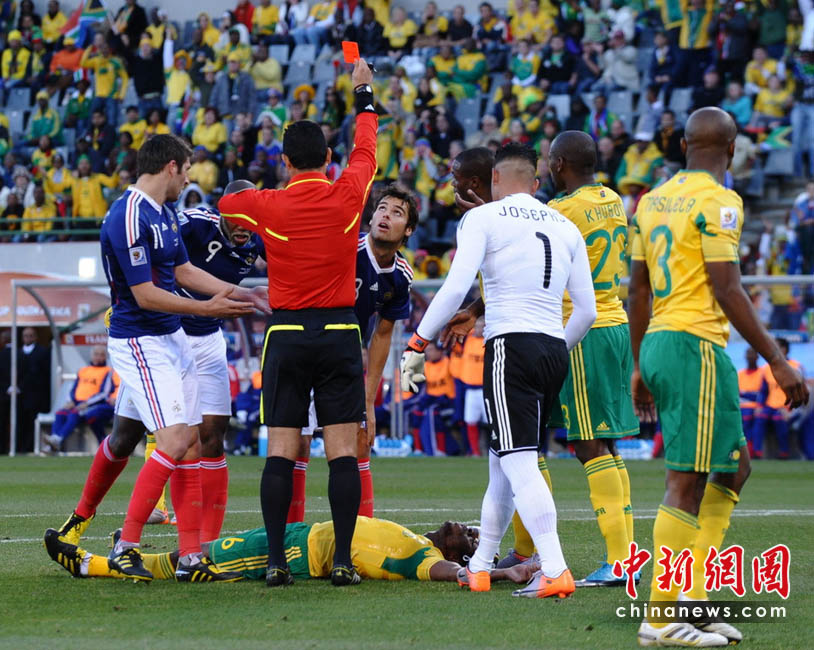 北京時(shí)間22日22時(shí),南非世界杯小組賽A組結(jié)束了最后一輪的比賽,前世界冠軍法國隊(duì)迎戰(zhàn)東道主南非隊(duì)。最終法國隊(duì)1比2告負(fù)。法國隊(duì)和南非隊(duì)雙雙被淘汰出局,南非隊(duì)成為世界杯首個(gè)未能沖出小組賽的東道主。