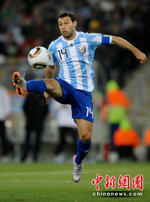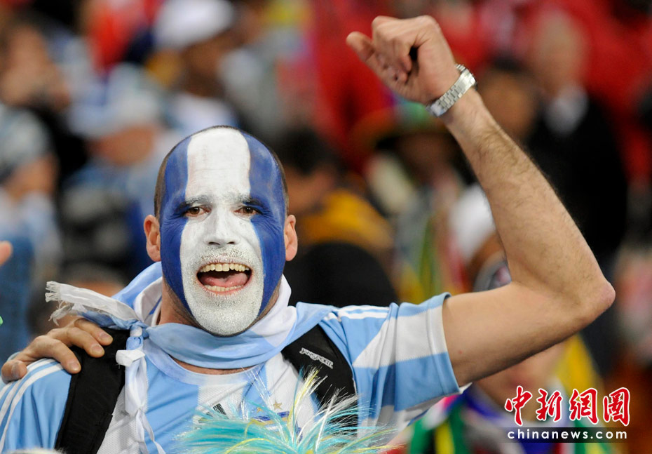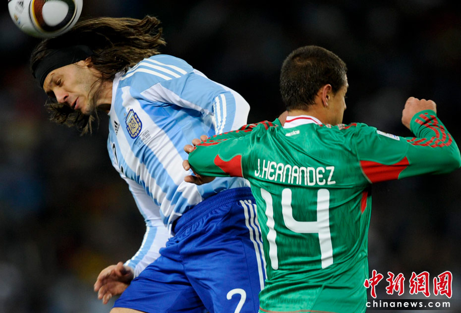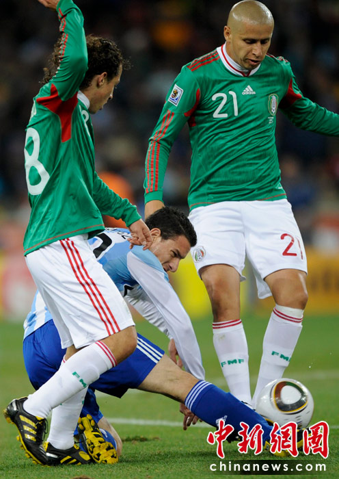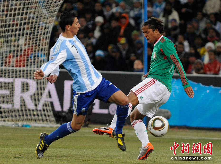 北京時間6月28日凌晨2:30,南非世界杯1/8決賽再賽一場,阿根廷隊在約翰內(nèi)斯堡的足球城球場迎來了墨西哥隊。憑借特維斯一個明顯越位進球首開紀錄,隨后伊瓜因和特維斯各進一球,以3-1擊敗墨西哥,晉級八強。 中新社記者 廖攀 攝