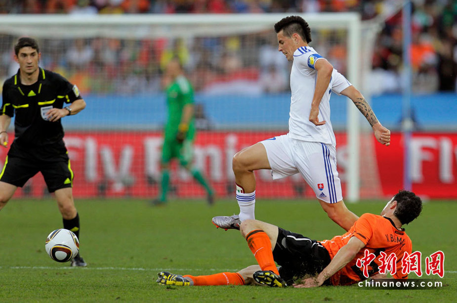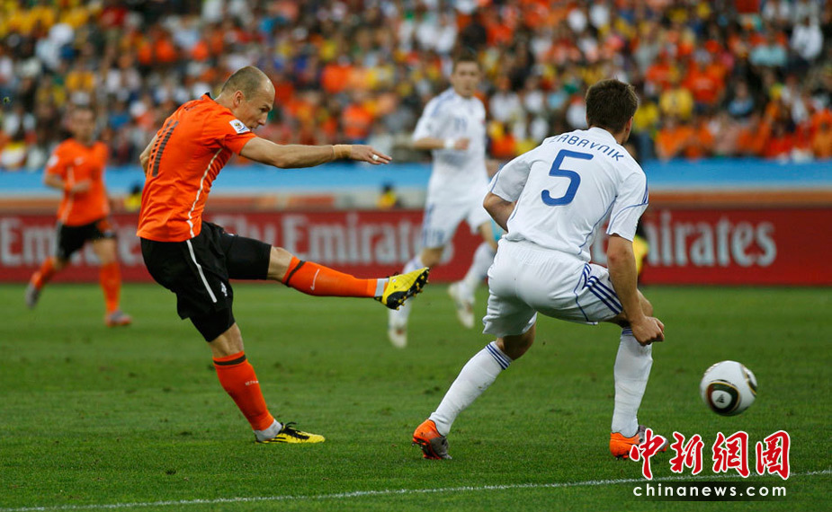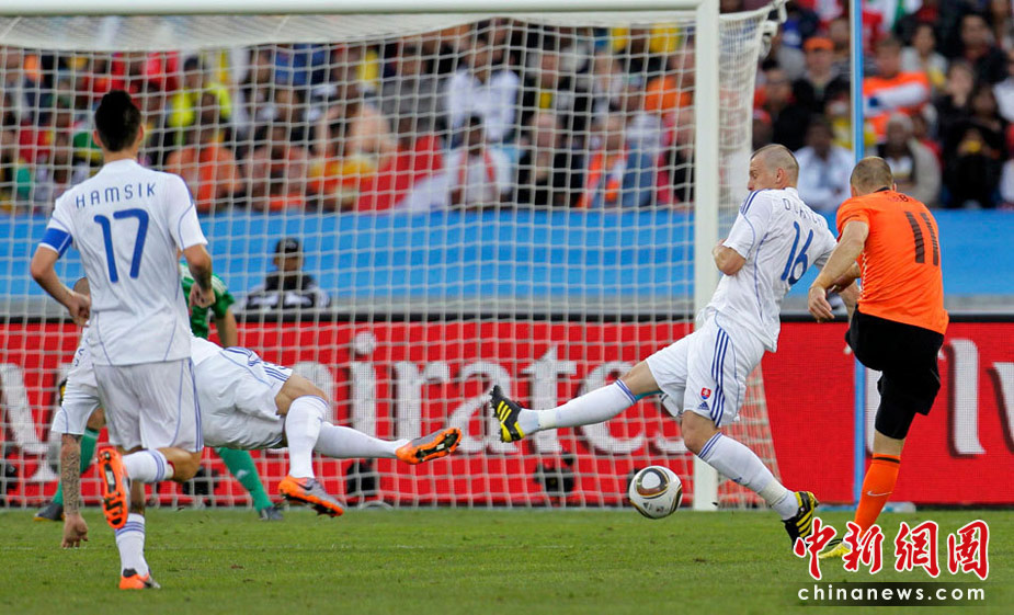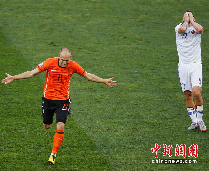 28日晚,南非世界杯1/8決賽第五場比賽在德班球場拉開戰(zhàn)幕,由E組頭名荷蘭隊(duì)迎戰(zhàn)F2第二名斯洛伐克。最終,憑借羅本和斯內(nèi)德在上下半場的進(jìn)球,荷蘭隊(duì)以2-1淘汰斯洛伐克,闖入八強(qiáng)。
