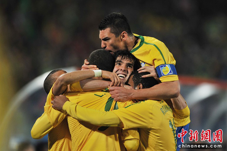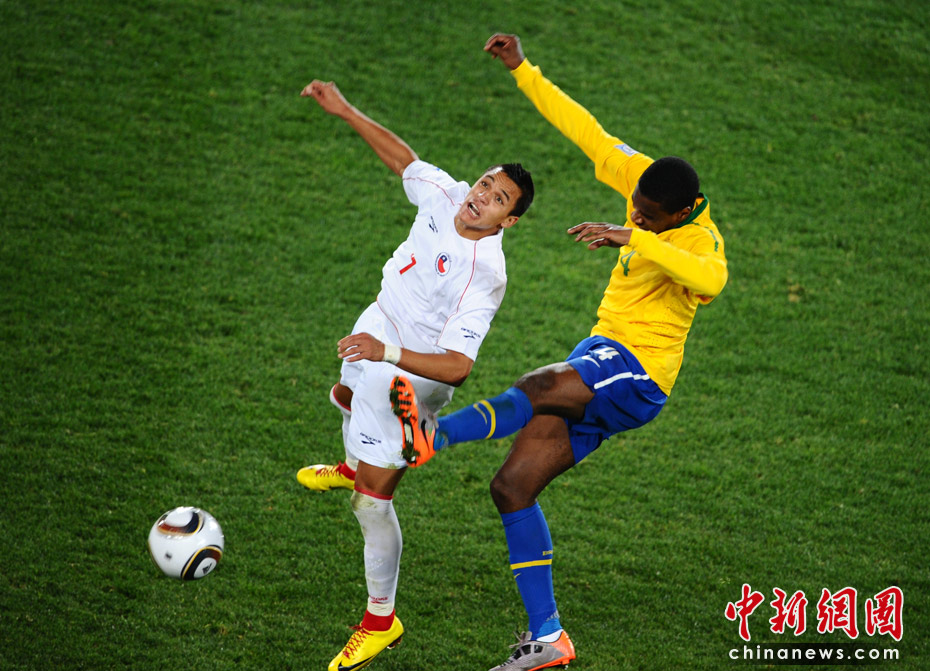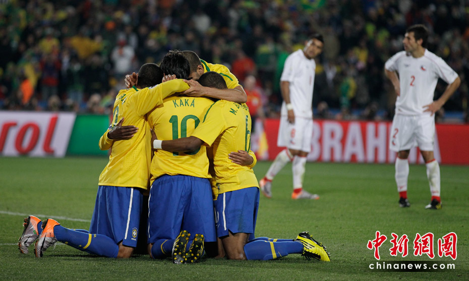 6月29日凌晨2:30,南非世界杯1/8決賽再戰(zhàn)一場。奪冠熱門巴西隊在約翰內斯埃利斯公園球場迎來了南美兄弟智利隊。最終憑借胡安和法比亞諾的在上半場的進球、羅比尼奧下半場錦上添花,巴西隊以3-0淘汰智利,晉級八強。