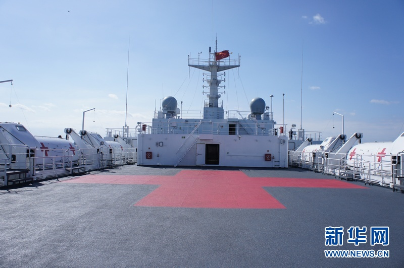 “和平方舟”醫(yī)院船,在這次演習(xí)中作為指揮艦和醫(yī)療救援船。曾執(zhí)行過“和諧使命”系列遠(yuǎn)航任務(wù)。孟彥 攝 圖片來源:新華網(wǎng)