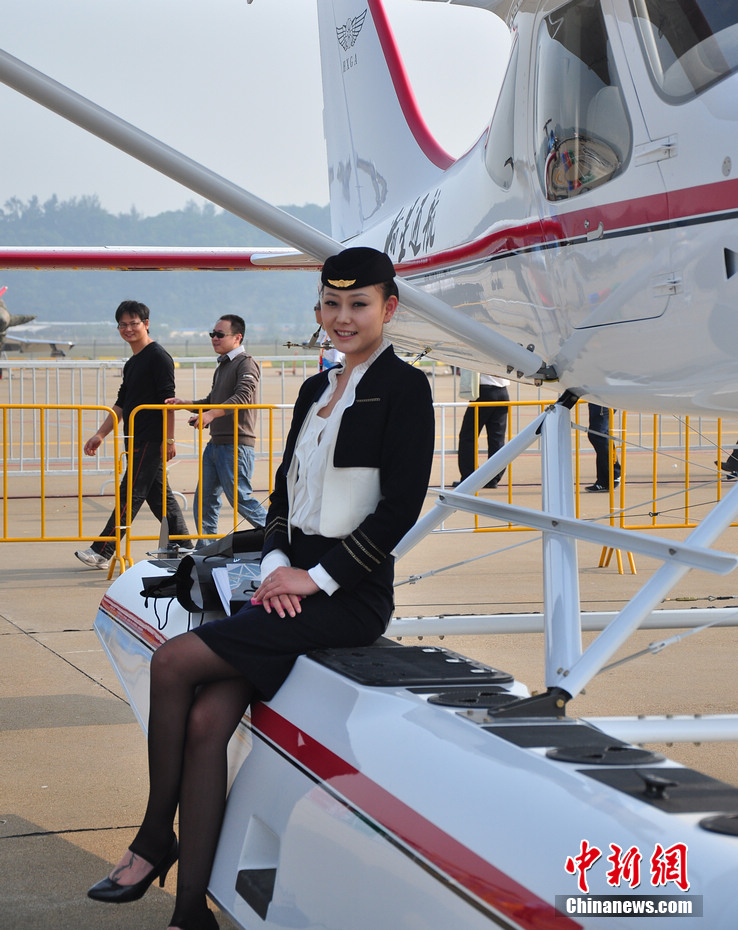 每一屆珠海航展都會(huì)有許多佳麗現(xiàn)身,而這次航展上的直升機(jī)模特更是讓觀眾大飽眼福。中新網(wǎng)記者 陳海峰 攝
