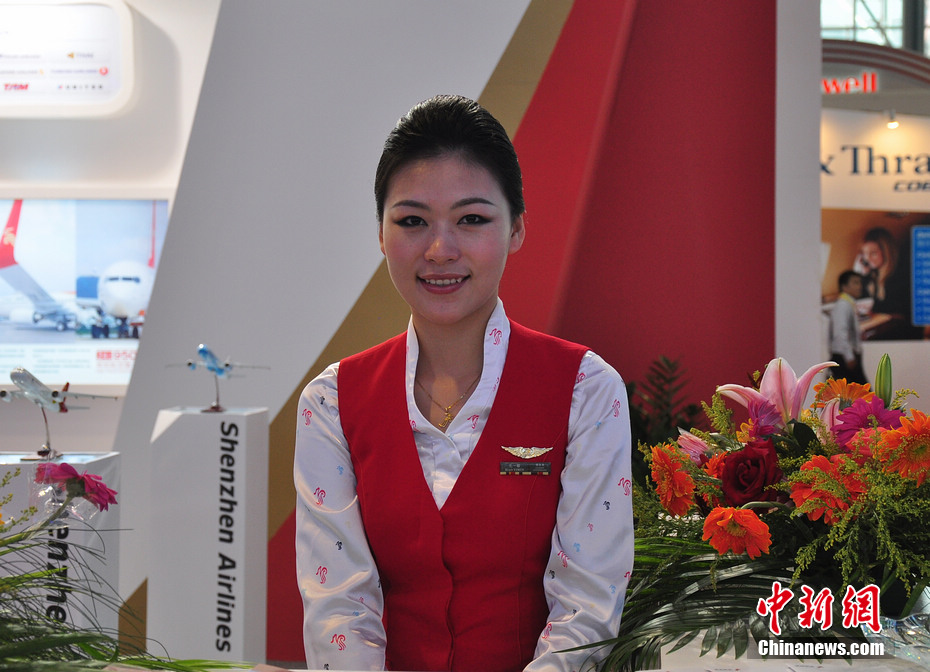每一屆珠海航展都會有許多佳麗現(xiàn)身,而這次航展上的直升機模特更是讓觀眾大飽眼福。中新網(wǎng)記者 陳海峰 攝
