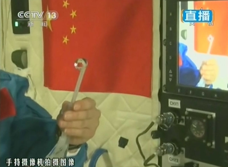6月20日上午10時(shí)許,神舟十號(hào)航天員進(jìn)行中國首次太空授課,女航天員王亞平擔(dān)任主講,成為中國首位“太空教師”。(視頻截圖)