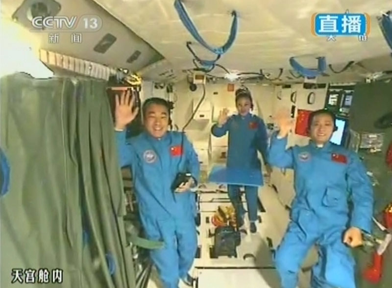 6月20日上午10時(shí)許,神舟十號(hào)航天員進(jìn)行中國首次太空授課,女航天員王亞平擔(dān)任主講,成為中國首位“太空教師”。(視頻截圖)