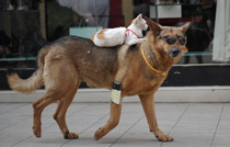 狗載小貓逛街超有愛(ài)
