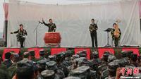 8月10日,隨同中方參演部隊赴俄羅斯參加“和平使命-2013”中俄聯(lián)演的沈陽軍區(qū)政治部文工團演員們,為中俄千余名參演官兵獻上了一場精彩的文藝晚會。豐富多彩的文藝節(jié)目,將位于切巴爾庫爾訓練場的中俄聯(lián)演野營村,變成了友誼的盛會、歡樂的海洋。 圖為精彩節(jié)目吸引俄國官兵。中新社發(fā) 李祥輝 攝