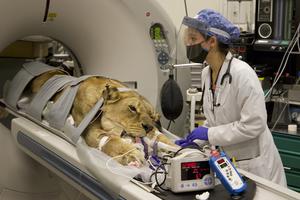 獅子進醫(yī)院做CT掃描